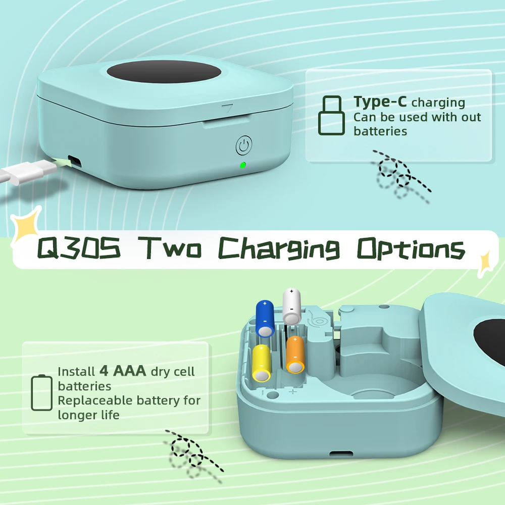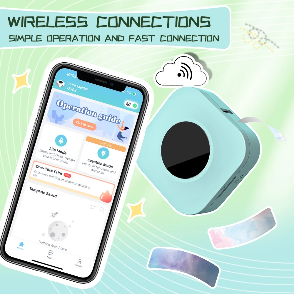 【Intimate Design】- Q30S label makers is a silent label maker that does not make any noise. When double-clicking the power button, the lable maker will automatically calibrate the label, without manual adjustment, which is very convenient to use.portable label maker no ink or toner, each label less than $0.02.