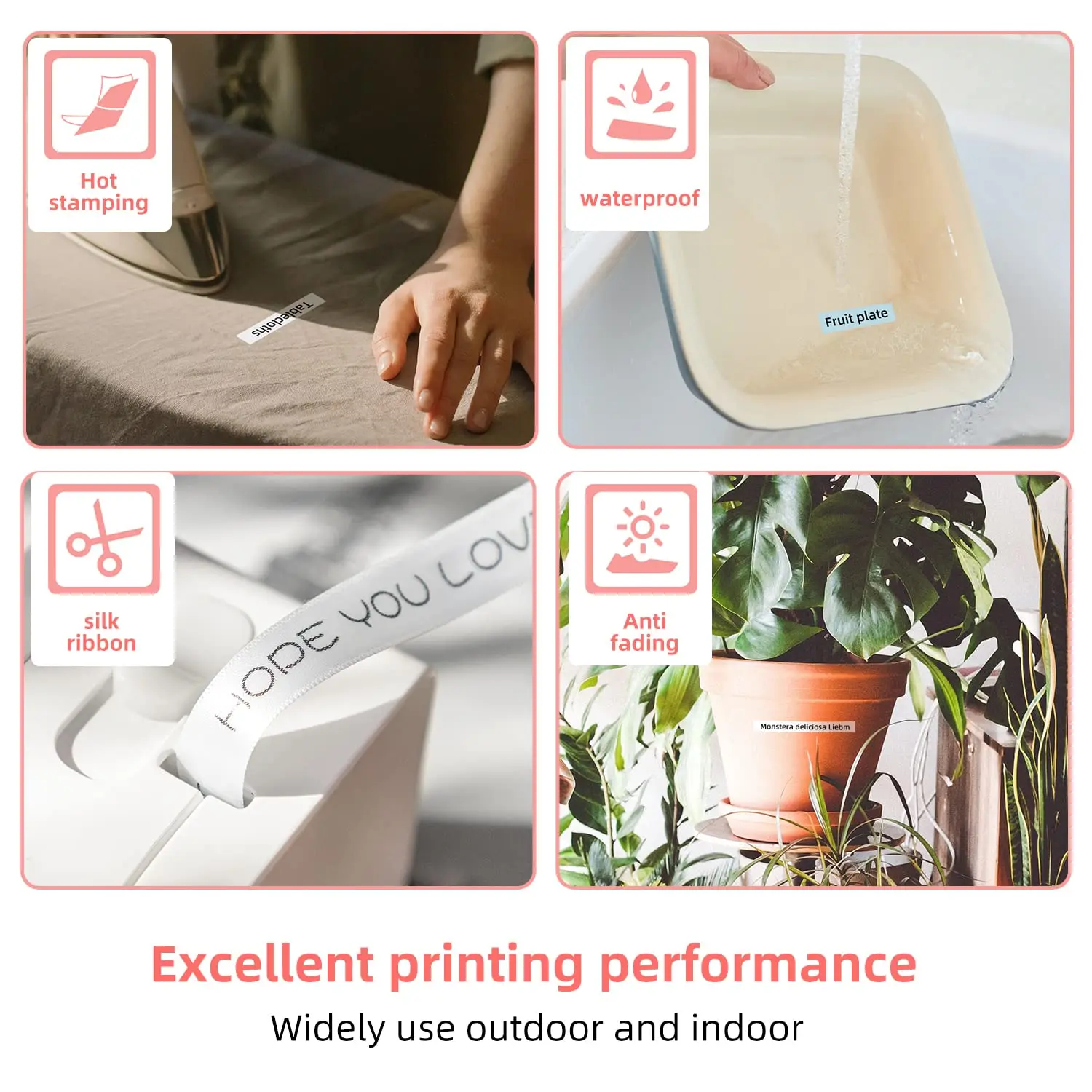 impresora de etiquetasadmite cintas de etiquetas de diferentes materiales.como plástico y papel que pueden usarse ampliamente en exteriores y interiores.Es de gran ayuda para mantener tuHogar y oficina organizados.