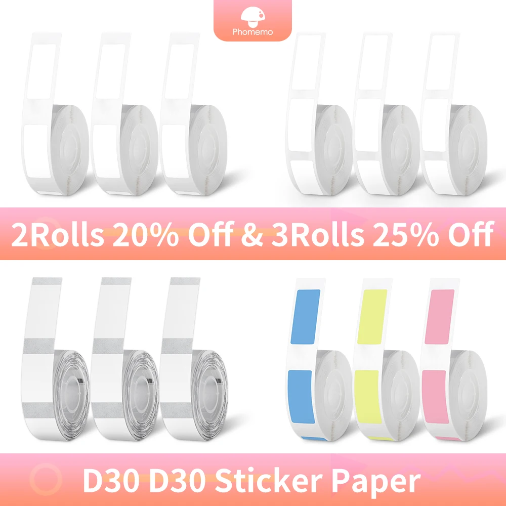 Comprar Phomemo-papel adhesivo autoadhesivo D30, Compatible con máquina de etiquetas de mano inalámbrica D30, fácil de usar para el hogar, compre 2 y obtenga 20% de descuento
