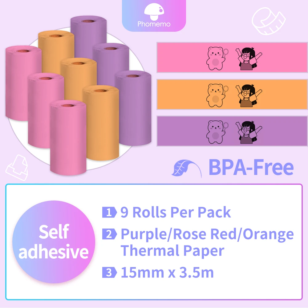Cada papel de impresora de bolsillo Phomemo tiene un respaldo fácil de pelar y un lado de papel adhesivo fuerte. Puede apilarlo fácilmente en su memorándum, diario, ventana, refrigerador y puerta sin que se caiga.