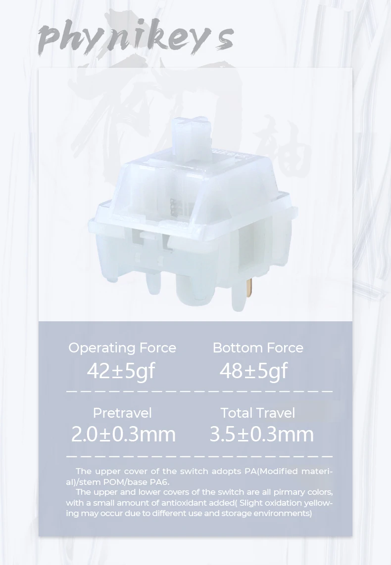 Comprar Phynikeys-interruptor lineal para teclado mecánico, dispositivo de primer encuentro, RGB SMD, 5 pines, 42g, 48g, PA POM, PA6, HIFI, prelumado de fábrica