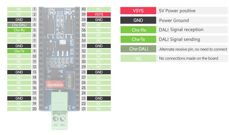La comunicación DALI se puede implementar utilizando varias placas de control principales ESP32 Pico.
