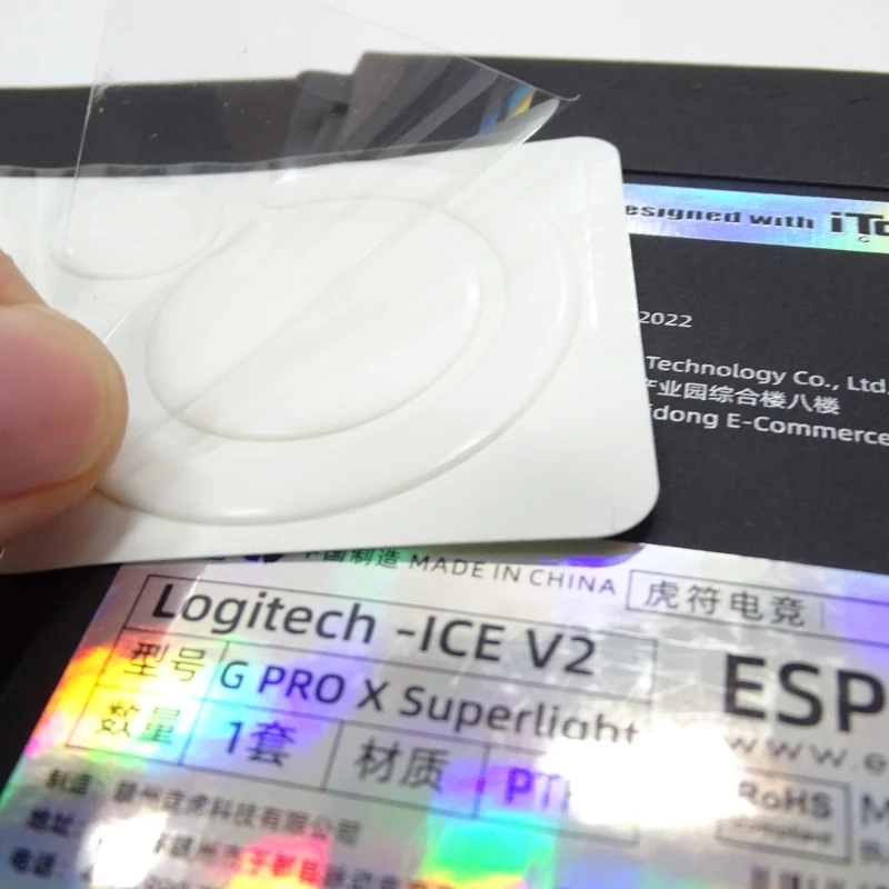 Las pegatinas de pie de ratón originales de Logitech tienen dos capas, que deben arrancarse antes de usar las pegatinas de pie de amuleto de Tigre.
