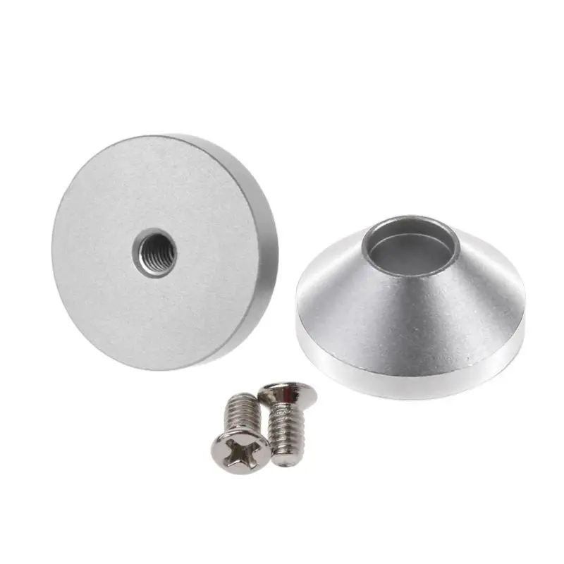 Mecanizado CNC de aluminio, estos pies de cono cuentan con un recubrimiento anodizado.