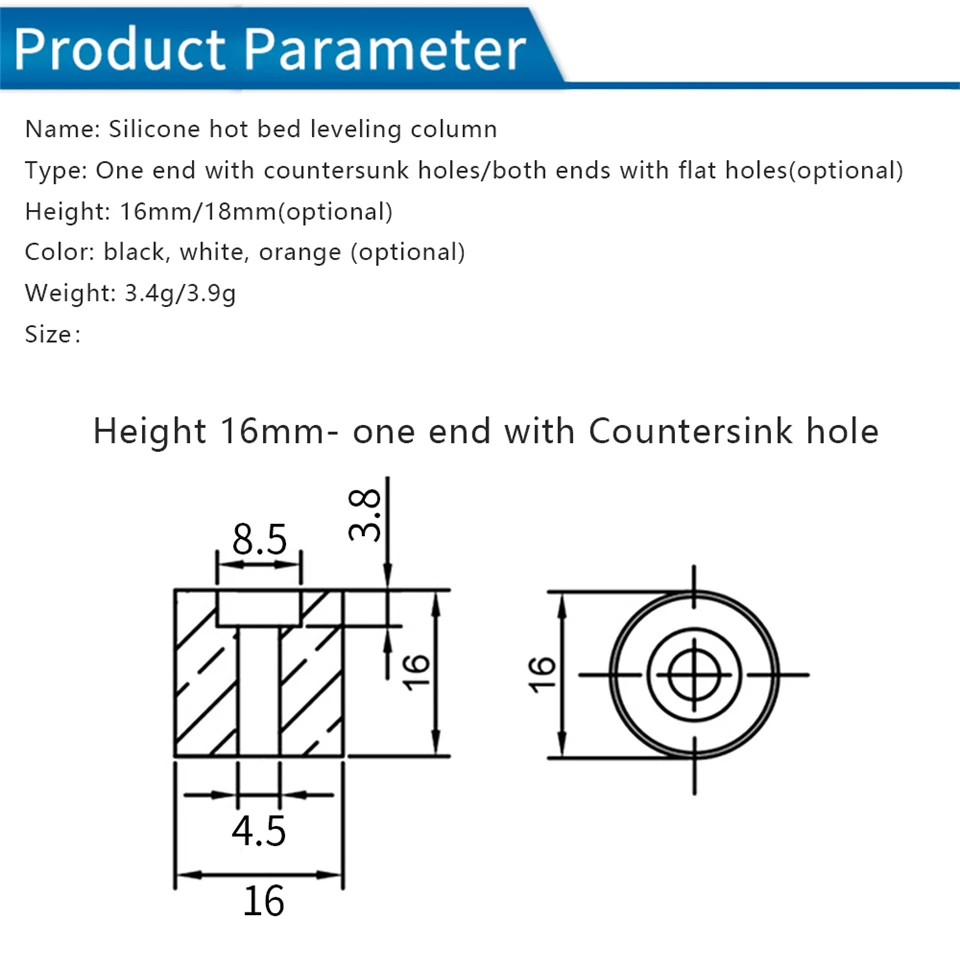 Pieza de impresora 3D, columna niveladora de cama caliente, nivelador de plataforma espaciadora sólida de silicona para CR10 Ender 3 V2 Prusa Anycubic Series Heatbed