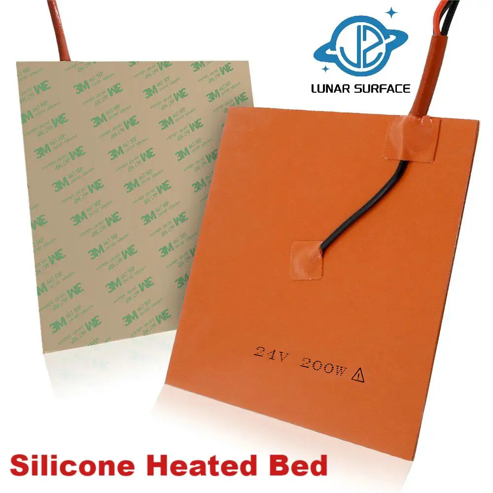Pieza de impresora de LS-3D, almohadilla calefactora de silicona para cama, impermeable, 200/300mm, 12V/24V/220V para cama caliente Ender 3V2 CR10 200/350/500/600W