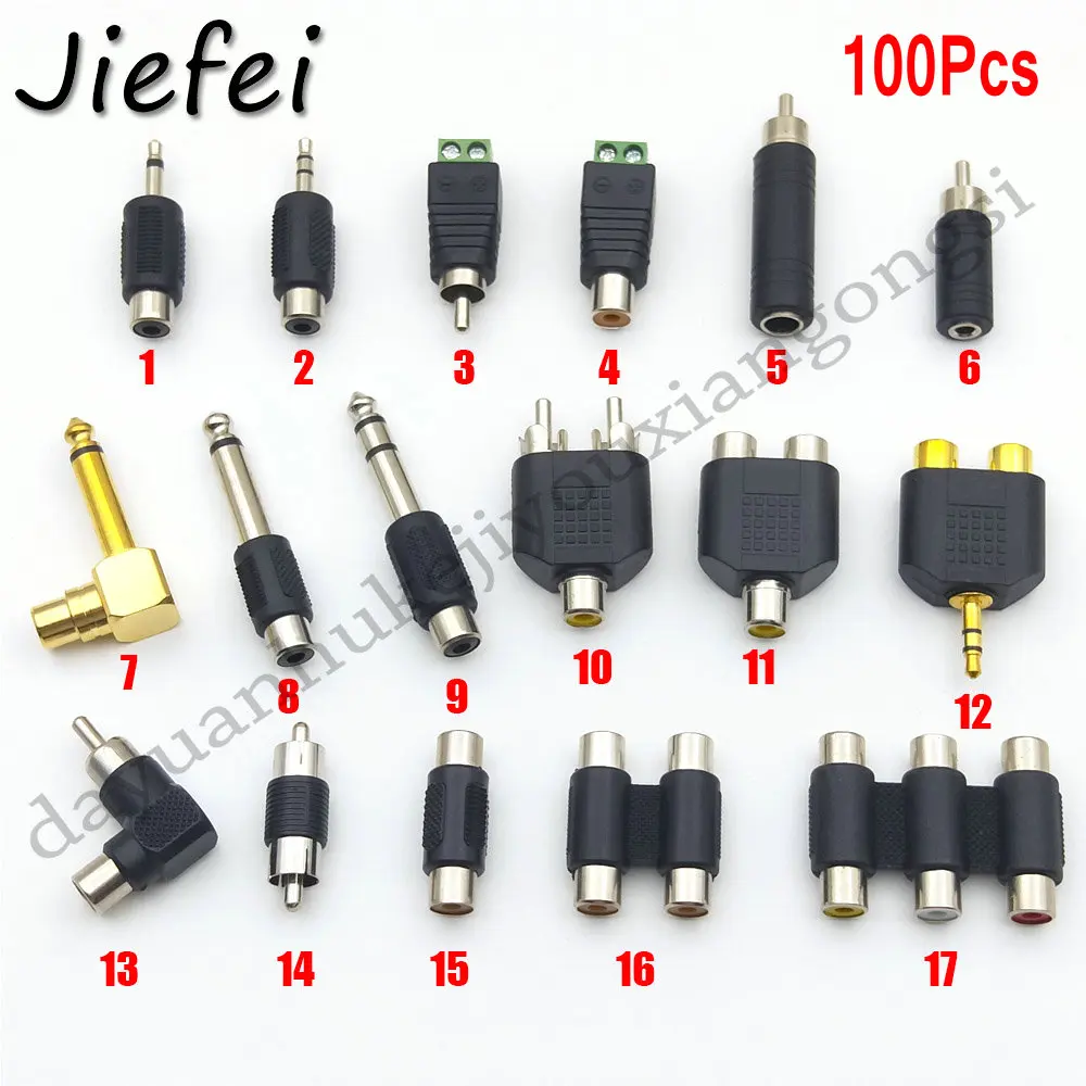 Comprar Piezas-17 tipos de adaptadores RCA, conector macho hembra a RCA, 100mm, 3,5mm, mono estéreo, macho y hembra, 6,35