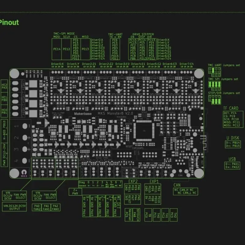 Características:OOTDTYMKS Monster8 V2 es una placa base de 32 bits y 8 ejes para placa de control de impresora 3D