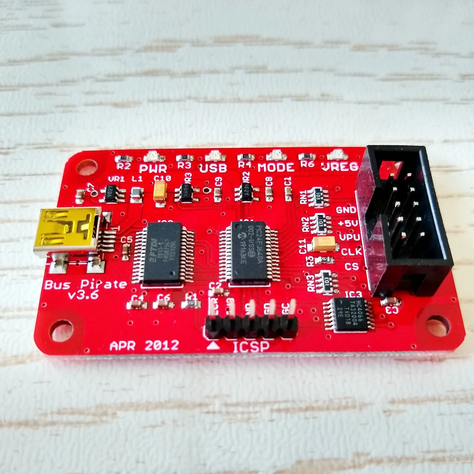BusPirate v3 es una interfaz de bus común, se comunica con el equipo electrónico del terminal del puerto serie de la PC y elimina el uso de chips nuevos o desconocidos bajo la condición de una gran cantidad de trabajos tempranos de diseño de prototipos.