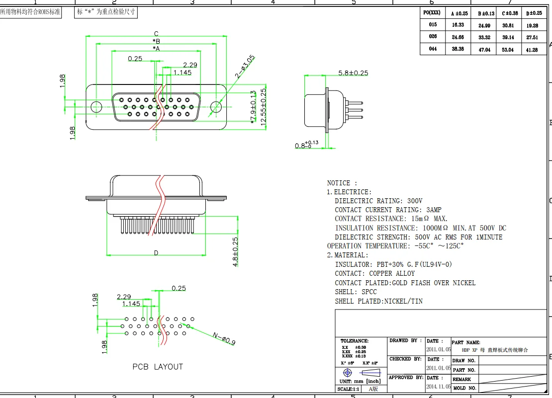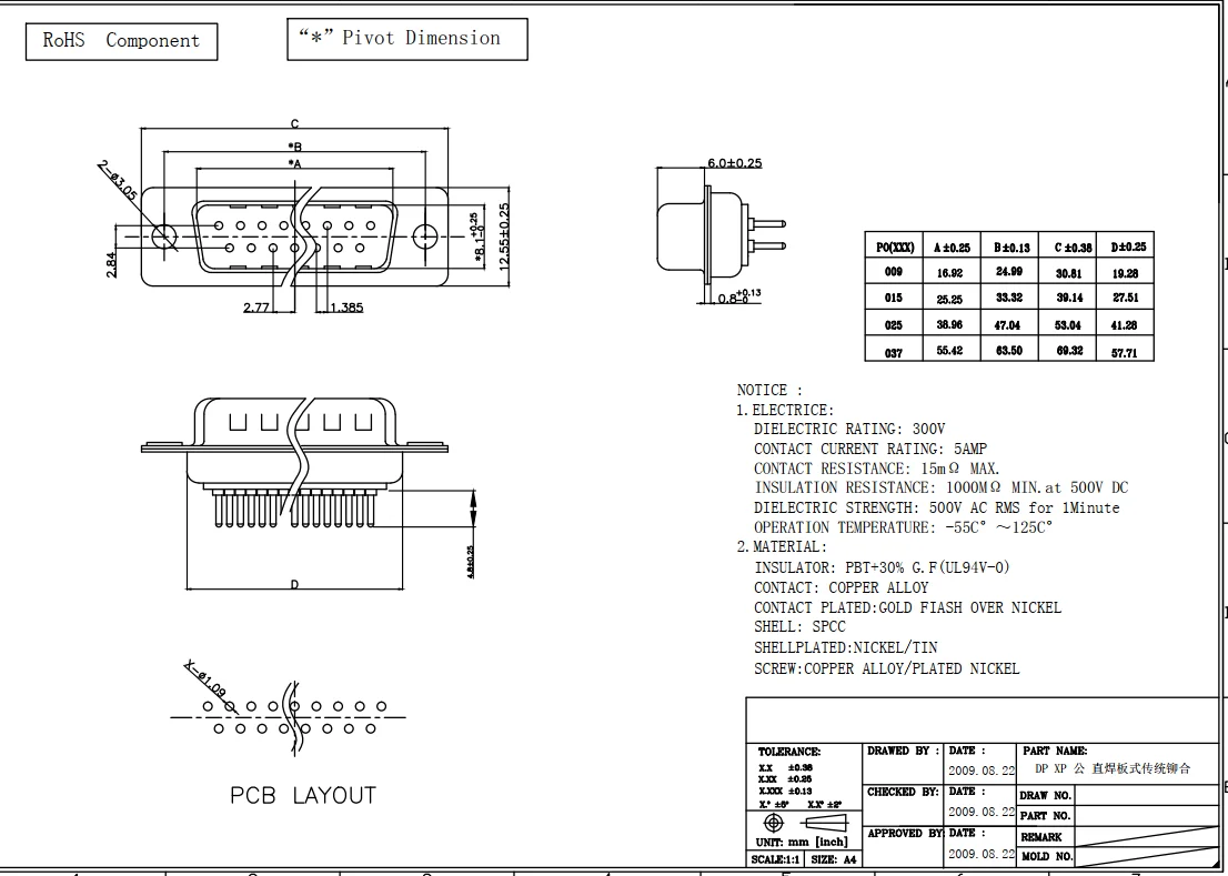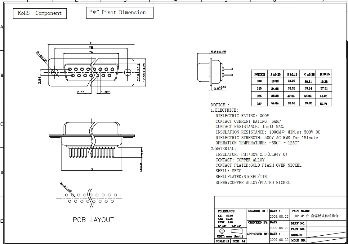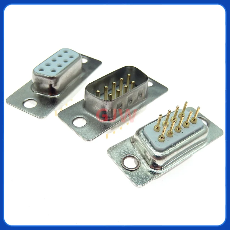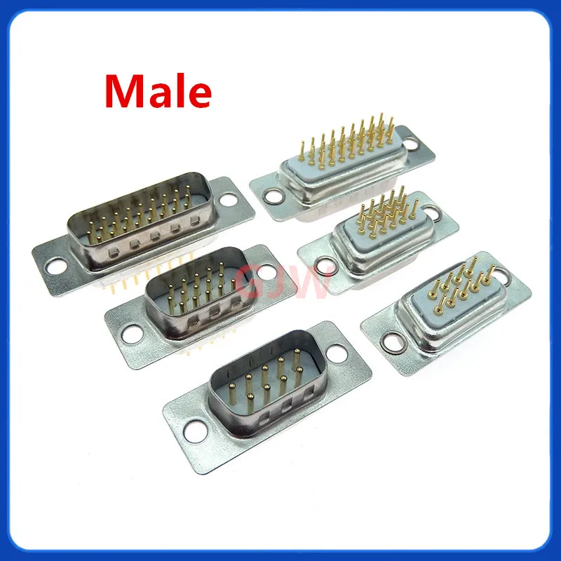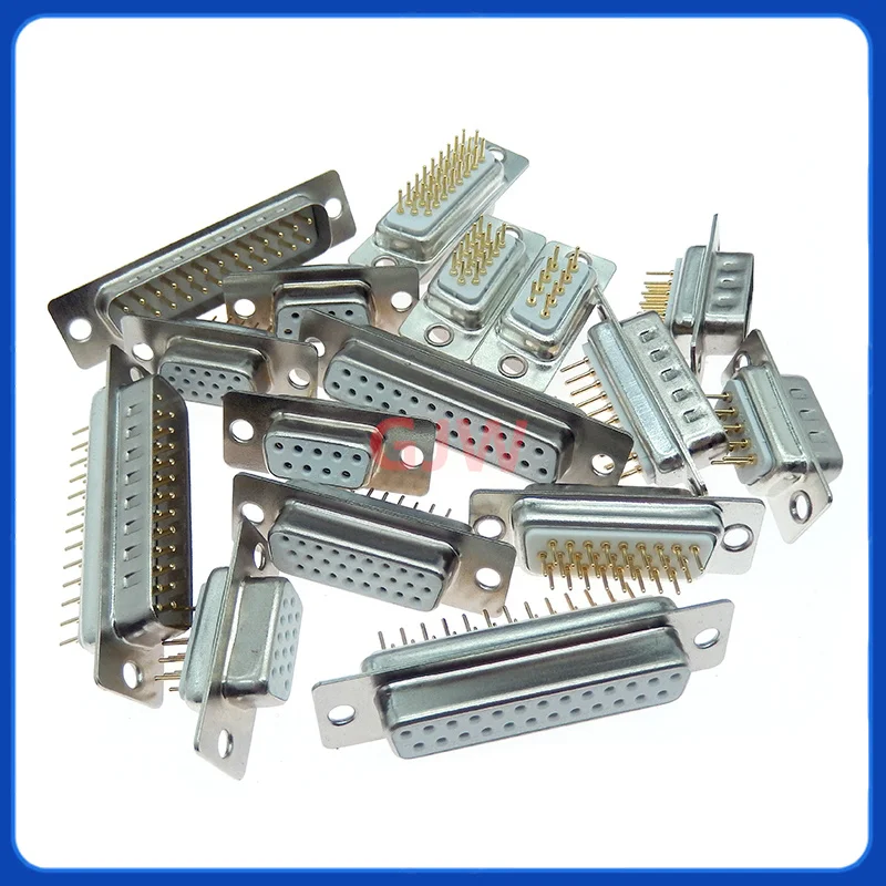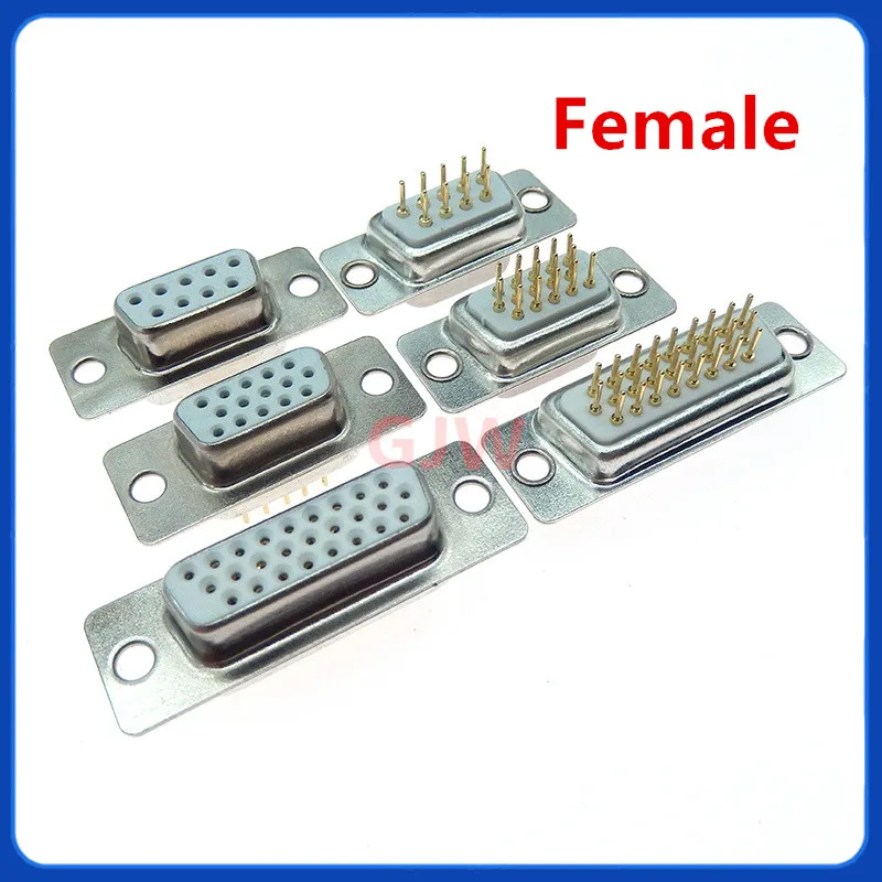 Piezas chapado en oro DB9 DP15 DP25 DP37 VGA DIP, Conector recto de PCB redondo de 9 pines, adaptador de enchufe macho y hembra de 9 P, 2 filas, 1 D-SUB