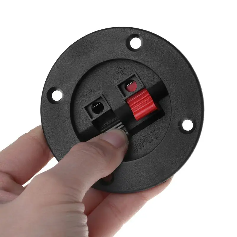 Piezas de conector de copa redonda de Terminal, Clip de resorte Express, tornillo de poste de doble unión, cable dorado, Subwoofer de coche, caja de altavoz negro, 2 uds.