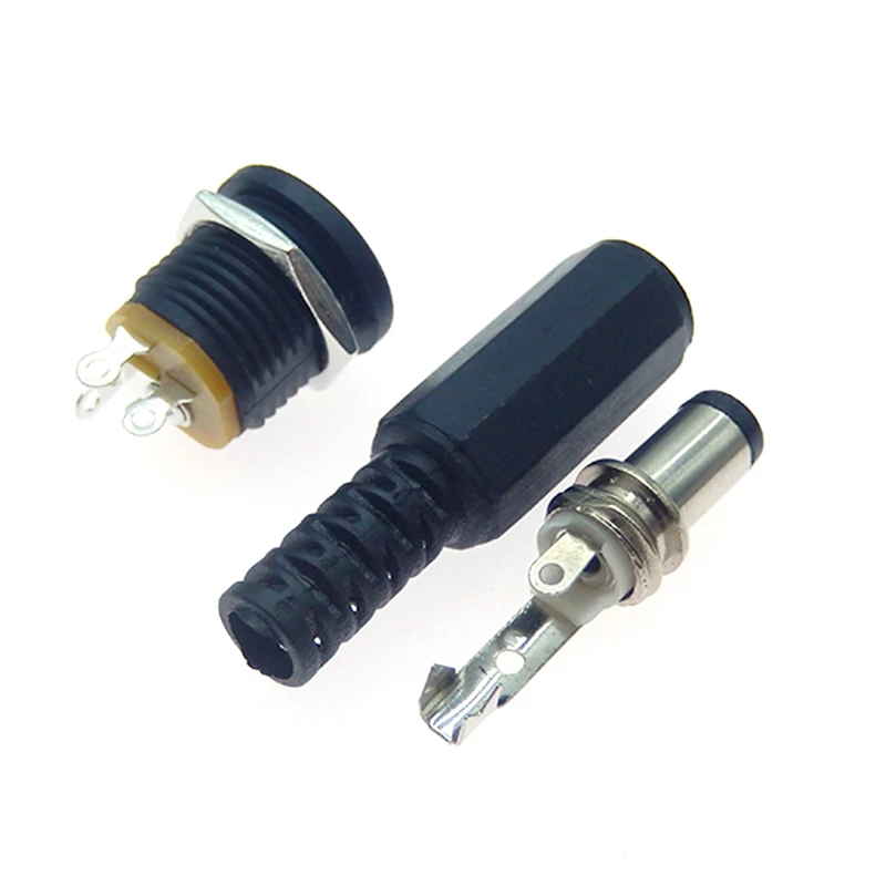 Piezas de enchufe macho de plástico de 12V y 3a, 10 DC-022, enchufe hembra de montaje en Panel, conector de alimentación de CC de 5,5x2,1mm, suministros eléctricos de 5,5x2,5