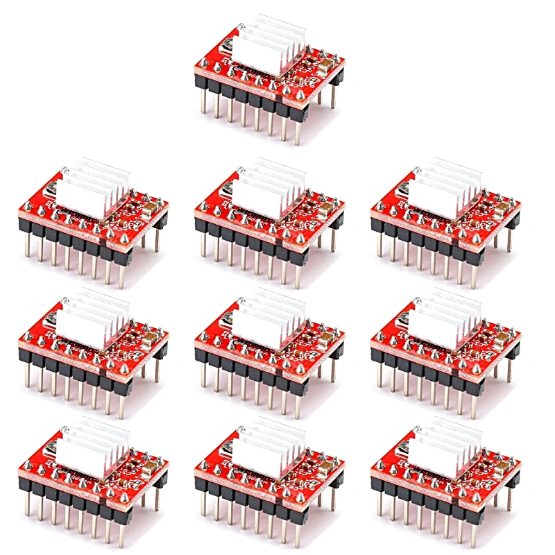 Comprar Piezas de impresora 3D de 10 piezas, controlador de Motor paso a paso, con disipador de calor, para SKR V1.3 1,4 GTR V1.0 rampas 1,4 1,6 MKS GEN Board, A4988 DRV8825
