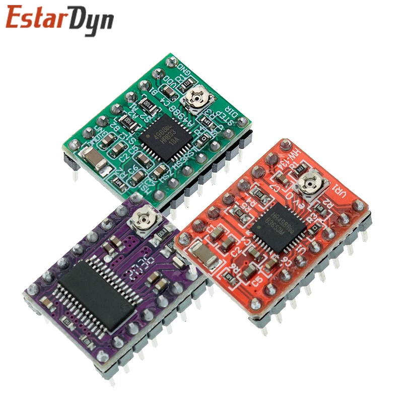 El módulo tiene una distribución de pines y una interfaz que son casi idénticas a las de nuestros soportes de controlador de motor paso a paso A4988, por lo que puede usarse como un reemplazo de enlace de mayor rendimiento para aquellas placas en muchas aplicaciones.
