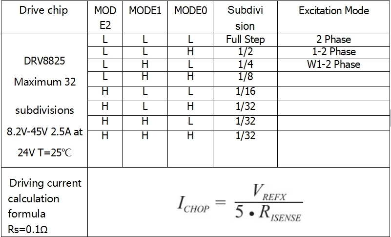 El DRV8825 cuenta con limitación de corriente ajustable, protección contra sobrecorriente y sobretemperatura, y seis resoluciones de micropasos (hasta 1/32 pasos).Funciona de 8,2 a 45 V y puede suministrar hasta aproximadamente 1,5 A por fase sin disipador de calor ni flujo de aire forzado (clasificado para hasta 2,2 A por bobina con suficiente refrigeración adicional).