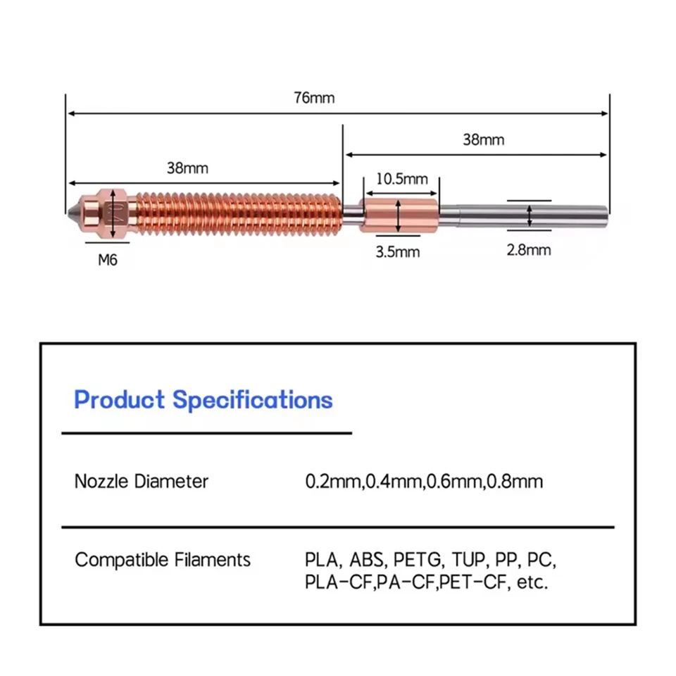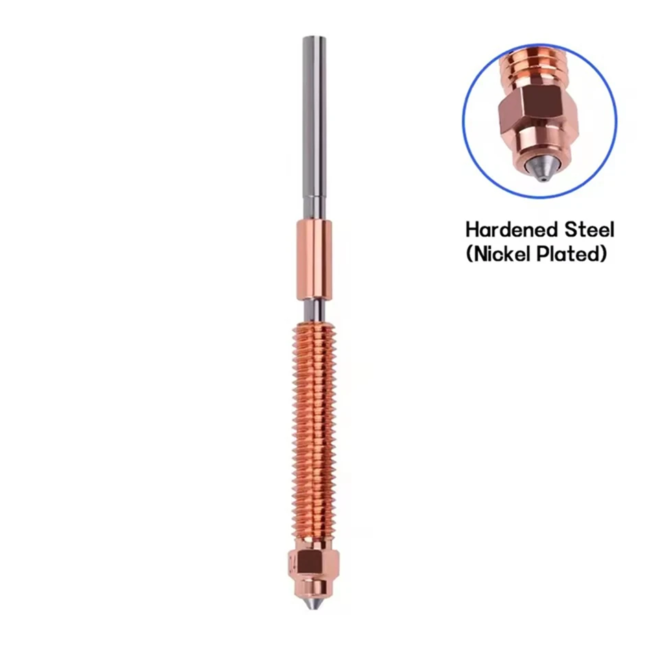 Amplia aplicación: la rotura de calor está hecha de aleación de titanio, lo que reduce la conducción de calor. La boquilla está compuesta de aleación de cobre y acero endurecido, lo que admite la impresión de diversos filamentos como PLA, ABS, PETG, TPU, PP, PC, PLA-CF,PA-CF, PET-CF, etc.