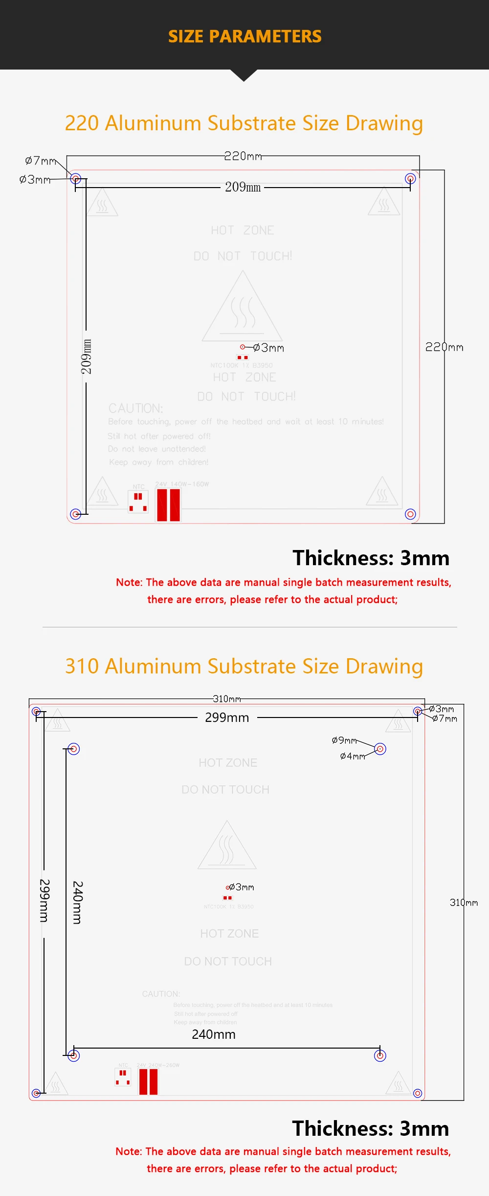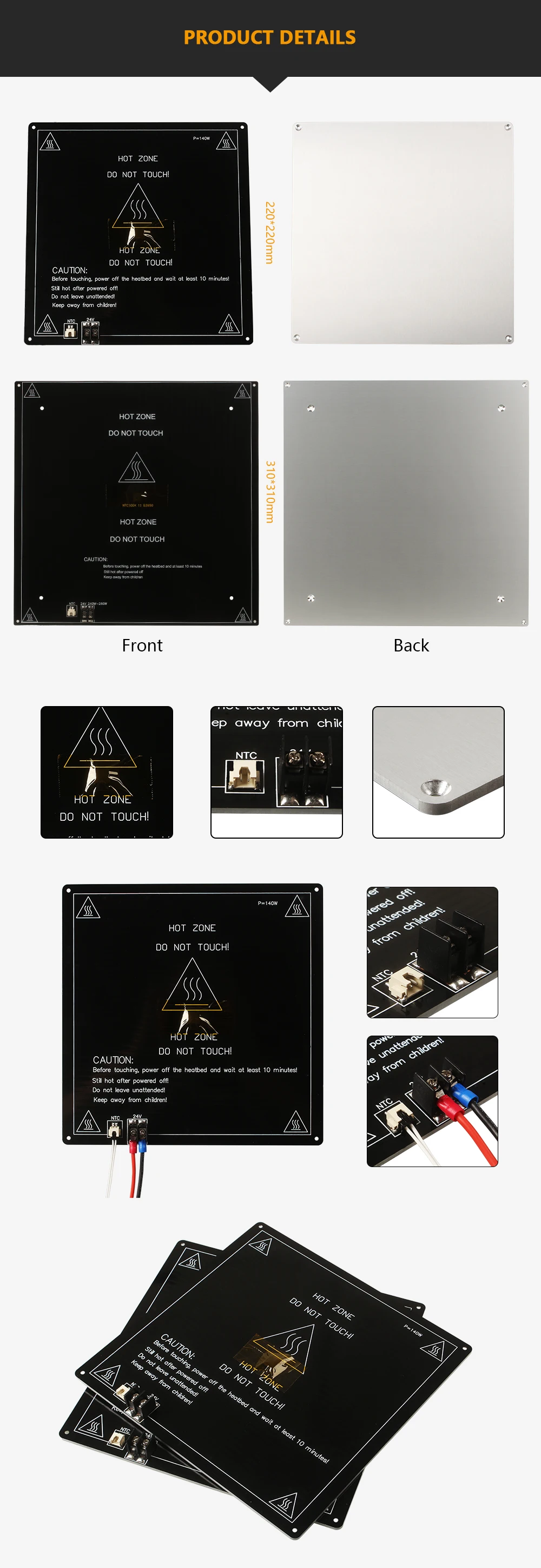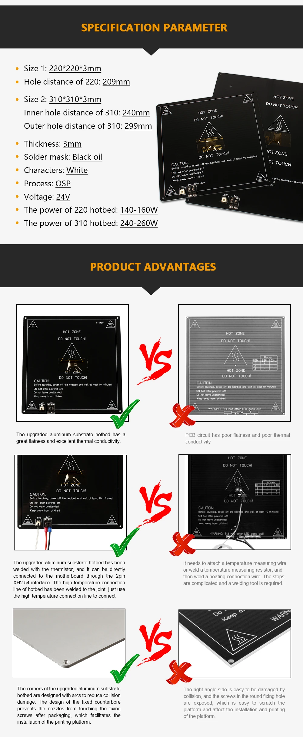 Comprar Piezas de impresora 3D, plataforma de cama caliente de sustrato de aluminio negro, MK 7/8 Ender3, 24V, 220mm, 310mm, NTC100K, Kit de bricolaje