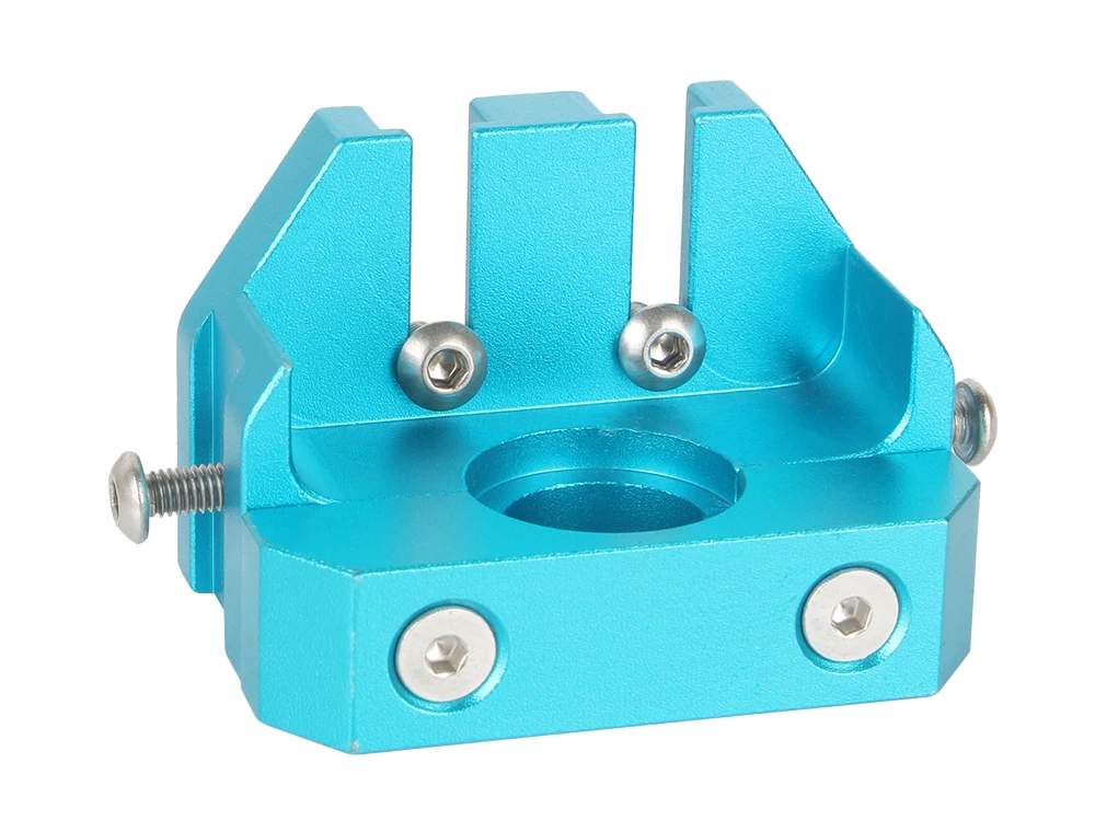 El soporte conecta los populares hotends E3D V6 y V6 Volcano (y compatibles) a una amplia variedad de impresoras 3D Creality sin la necesidad de un ajuste de altura de parada Z. El soporte incluye dos M3x0. 5 orificios (uno a cada lado para colocar cubiertas de ventilador ajustables disponibles para descarga gratuita en Thingiverse) junto con dos M3x0. más. 5 orificios encima del soporte para que pueda agregar nuestros accesorios como un tubo Bowden y un soporte de gestión de cables (también disponible para descarga gratuita) o cualquier accesorio brillante y súper impresionante que surja; porque siempre es fantástico tener más puntos de fijación para los gizmos geniales. Además, lanzamos todos los herrajes de acero inoxidable necesarios, una llave hexagonal de extremo esférico Bondhus de 2 mm fabricada en EE. UU. y un conveniente espaciador para establecer correctamente la altura de la boquilla tanto para las configuraciones de hotend regular como para volcán.
