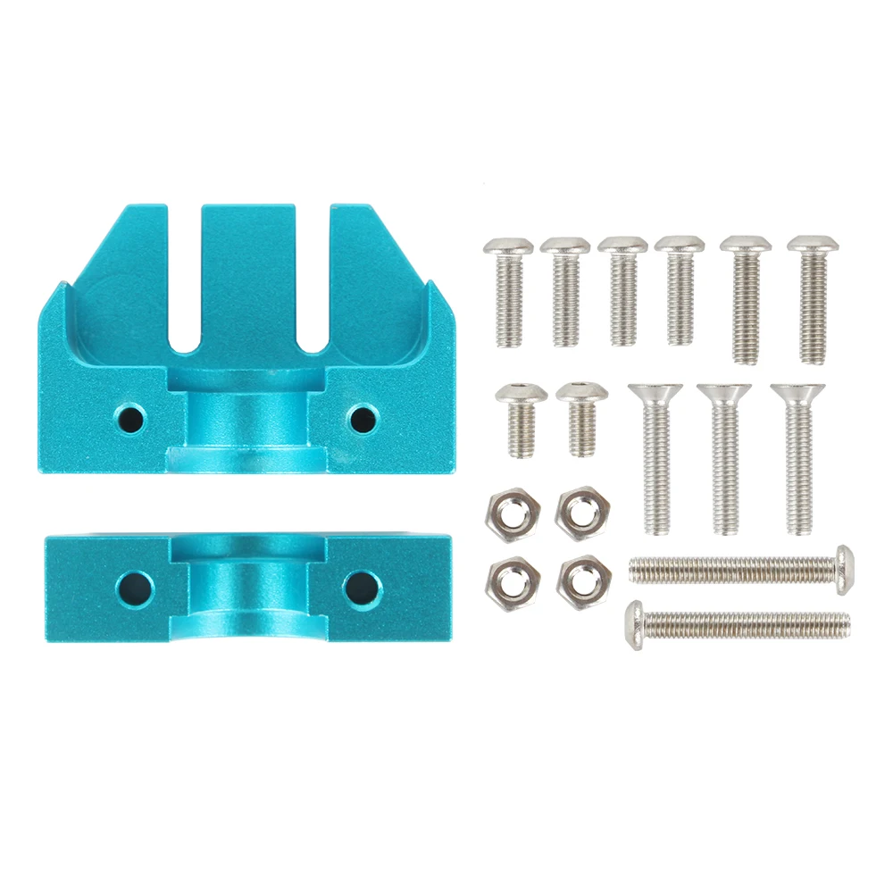 El soporte conecta los populares hotends E3D V6 y V6 Volcano (y compatibles) a una amplia variedad de impresoras 3D Creality sin la necesidad de un ajuste de altura de parada Z. El soporte incluye dos M3x0. 5 orificios (uno a cada lado para colocar cubiertas de ventilador ajustables disponibles para descarga gratuita en Thingiverse) junto con dos M3x0. más. 5 orificios encima del soporte para que pueda agregar nuestros accesorios como un tubo Bowden y un soporte de gestión de cables (también disponible para descarga gratuita) o cualquier accesorio brillante y súper impresionante que surja; porque siempre es fantástico tener más puntos de fijación para los gizmos geniales. Además, lanzamos todos los herrajes de acero inoxidable necesarios, una llave hexagonal de extremo esférico Bondhus de 2 mm fabricada en EE. UU. y un conveniente espaciador para establecer correctamente la altura de la boquilla tanto para las configuraciones de hotend regular como para volcán.