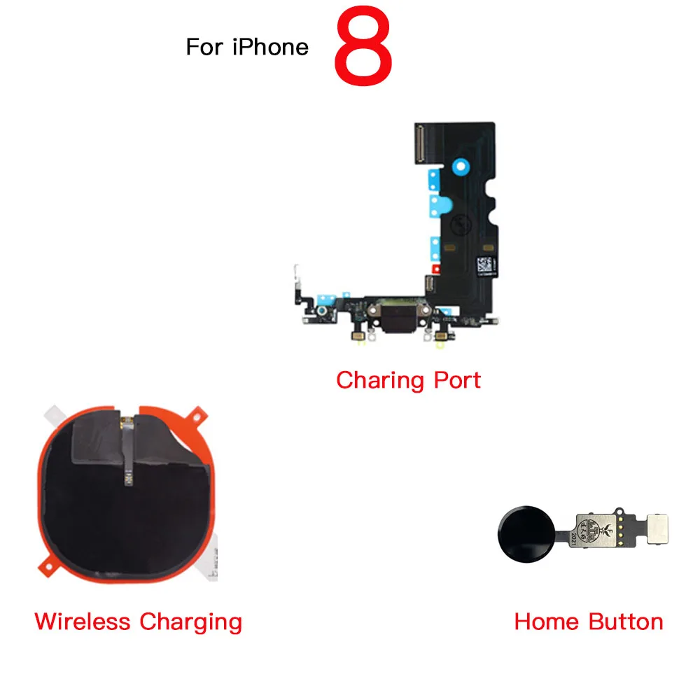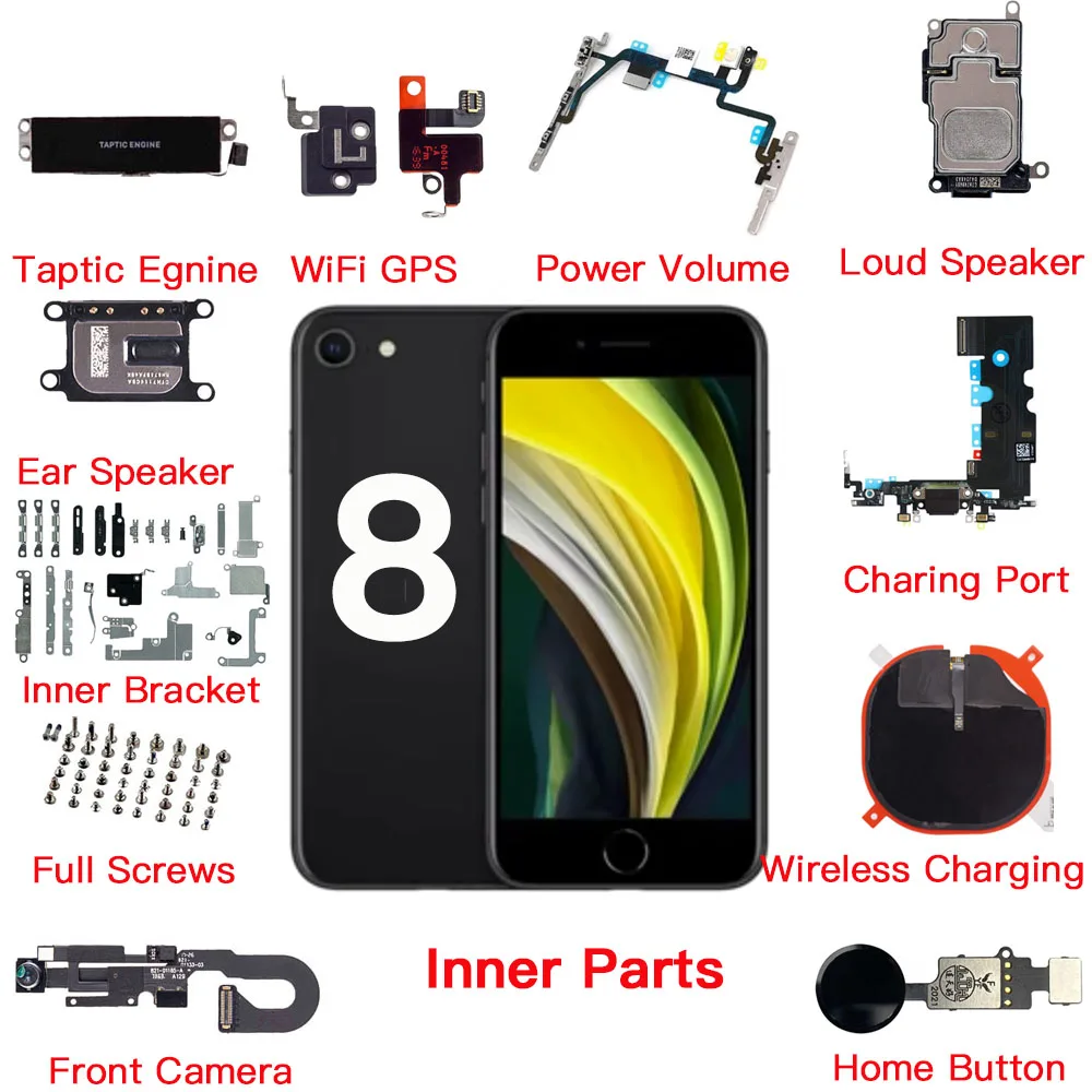 Piezas internas para iPhone 8, cámara frontal, altavoz de oreja, carga de volumen de energía, Cable flexible, motor Taptic, soporte de todas las tornillos