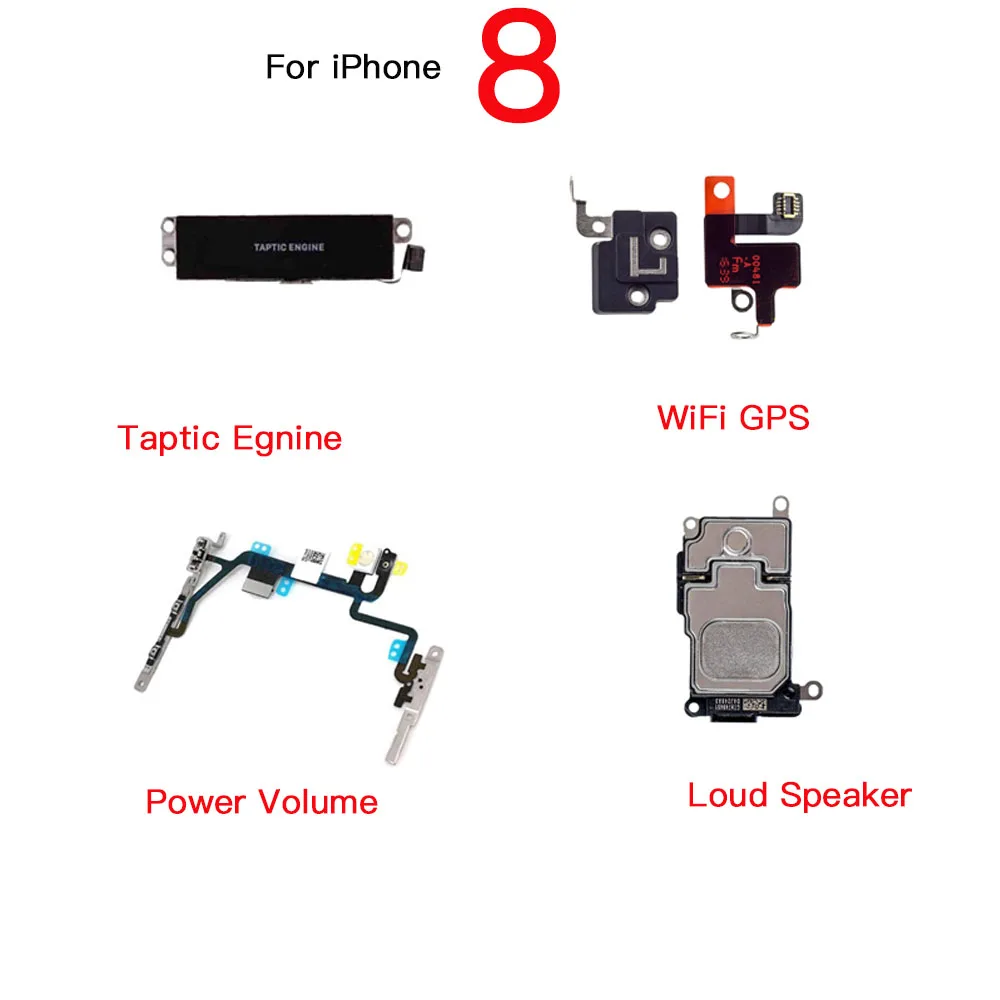 Comprar Piezas internas para iPhone 8, cámara frontal, altavoz de oreja, carga de volumen de energía, Cable flexible, motor Taptic, soporte de todas las tornillos