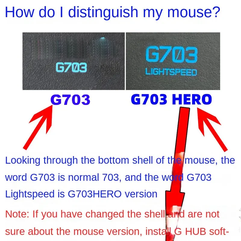 Tenga en cuenta: G703 es diferente de la versión G703Hero y la línea de filas de microtableros es diferente.Elija correctamente la versión de su mouse.No está instalado para ser instalado.(Despegar con imágenes para identificar modelos)
