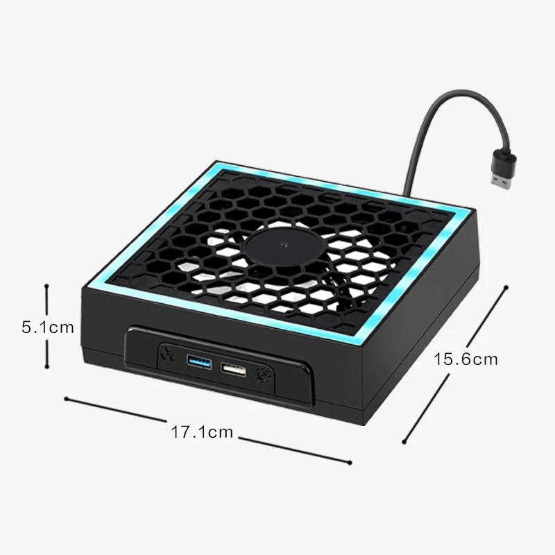 Ventilador de refrigeración de tipo superior con ventilador de refrigeración y diseño de barra de luz LED, el cable de carga USB se conecta al puerto de salida USB de la consola de la serie X.