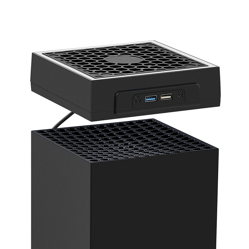 2. Este diseño multiorificio de montaje superior aumenta el espacio de ventilación. Permite que escape más aire caliente, enfriando así su X Series X a un mejor ritmo. Diseñado con ventilador de refrigeración y barra de luz LED