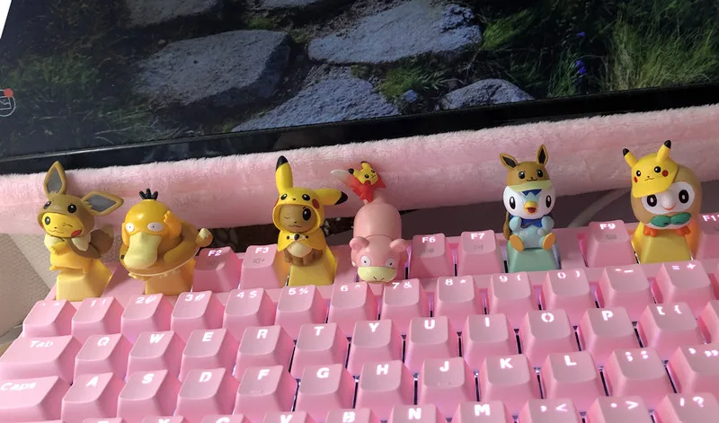 Comprar Pikachu de dibujos animados, bonita personalidad DIY, Pikachu, tecla mecánica, eje transversal, tecla única