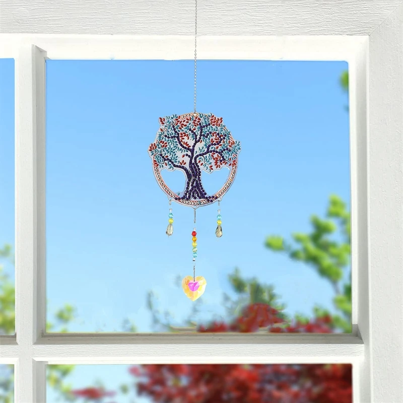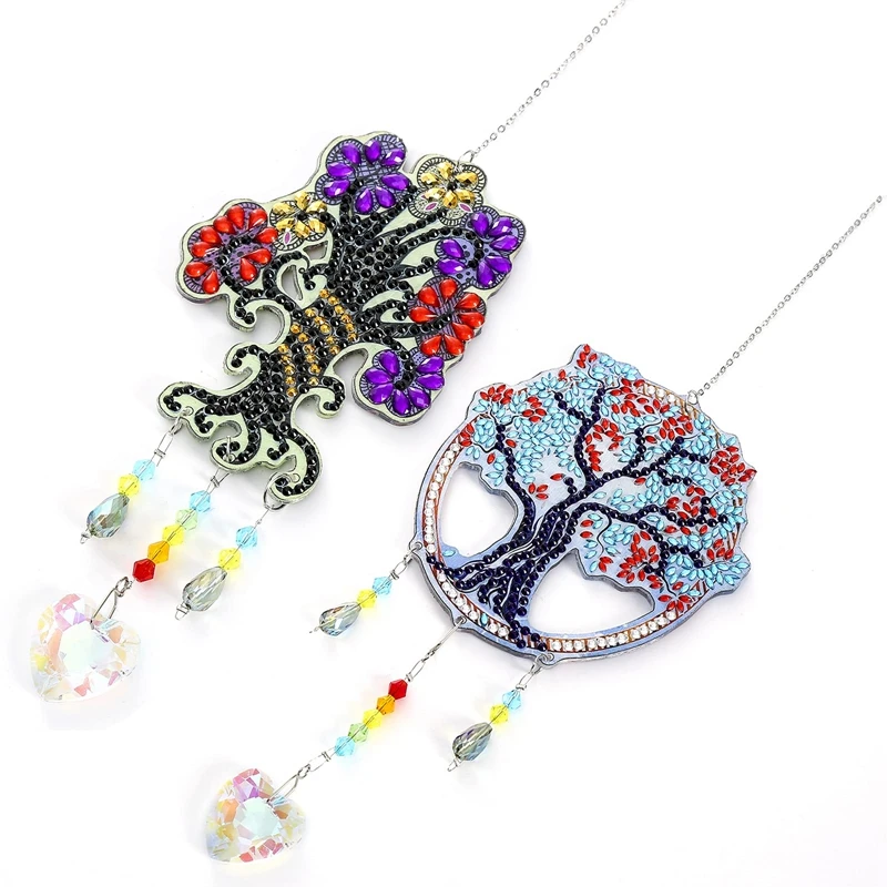 2 piezas diamante pintura DIY forma especial taladro árboles ventana colgante ornamento cristal Suncatcher viento carillón número Kit EL PAQUETE INCLUYE: 2 juegos de atrapasoles de cristal con pintura de diamantes sin terminar. (Incluye cera de pegamento, bolígrafo, bandeja, mesa de trabajo, diamantes, hay más diamantes de los que realmente necesita) ¡disfrute de su diversión!