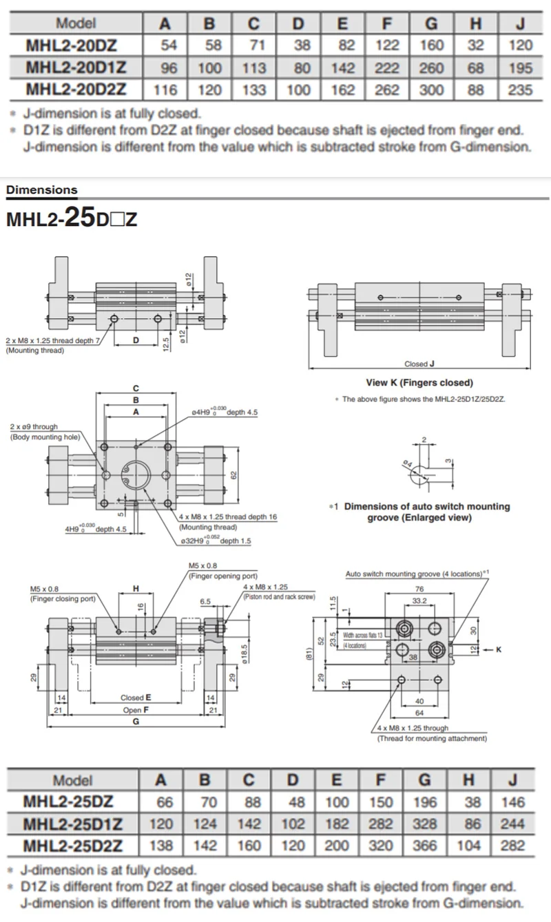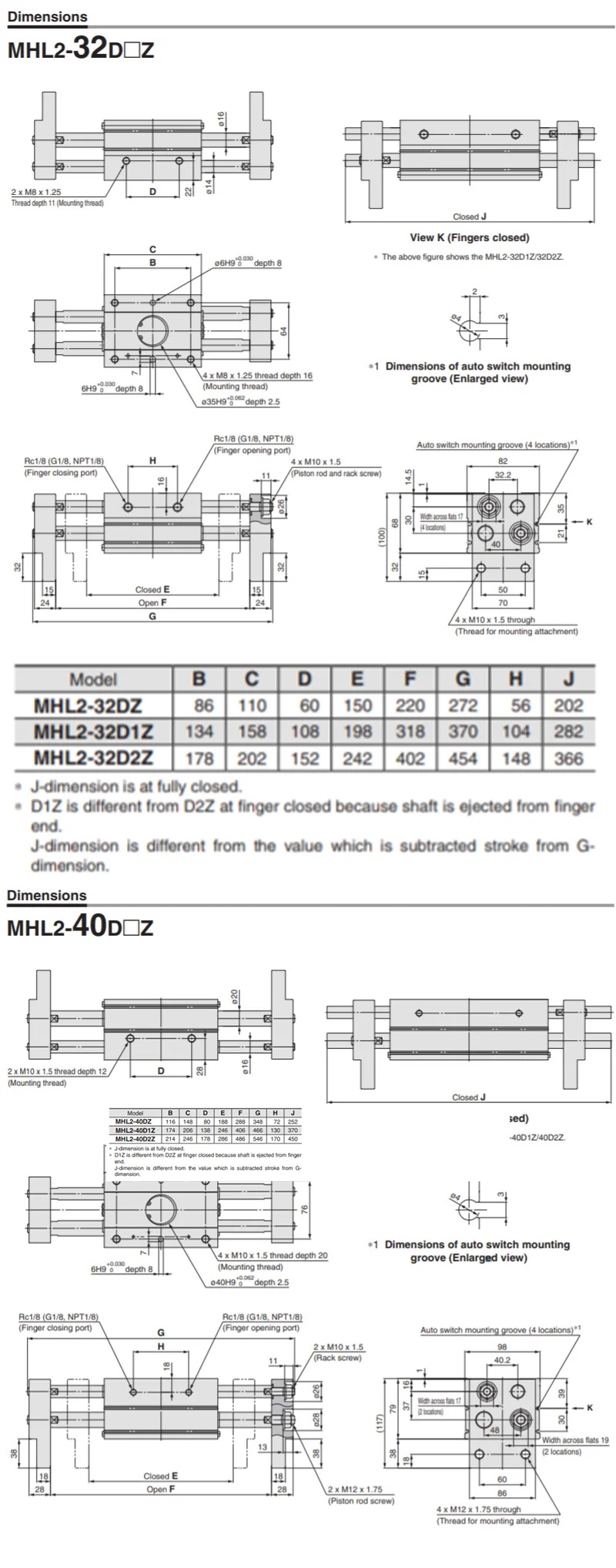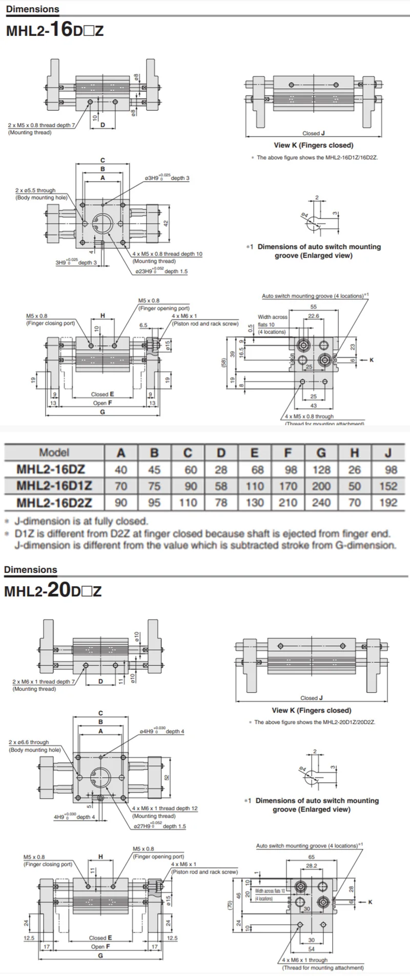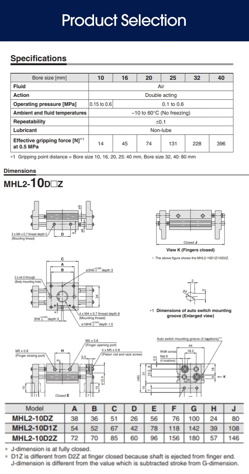 Pinza neumática MHL2 de doble efecto SMC, cilindro de aire de repuesto MHL2 10D/16D/20D/25D/10D1/16D1/20D1/25D1, pinza de aire