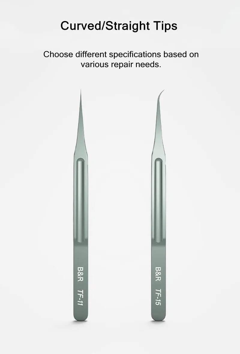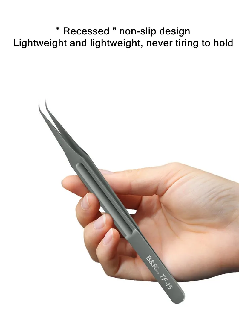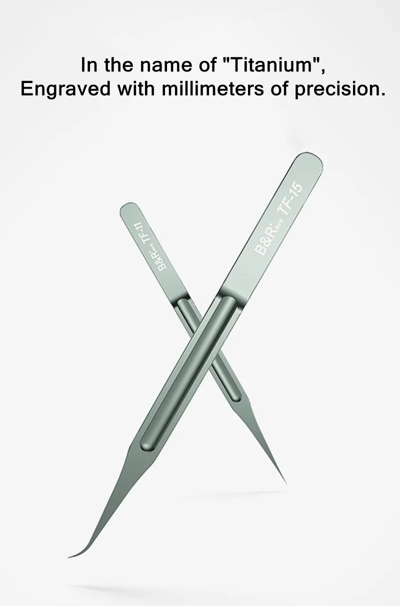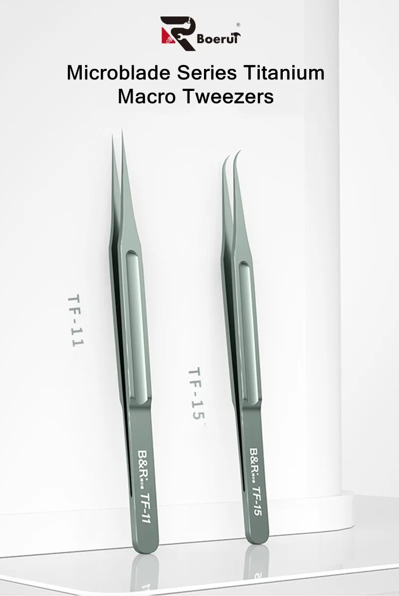 B & R TF-11 TF-15 Pinzas de aleación de titanio para mantenimiento de teléfonos móviles Pinzas de huellas dactilares de línea de mosca de placa base súper afiladas