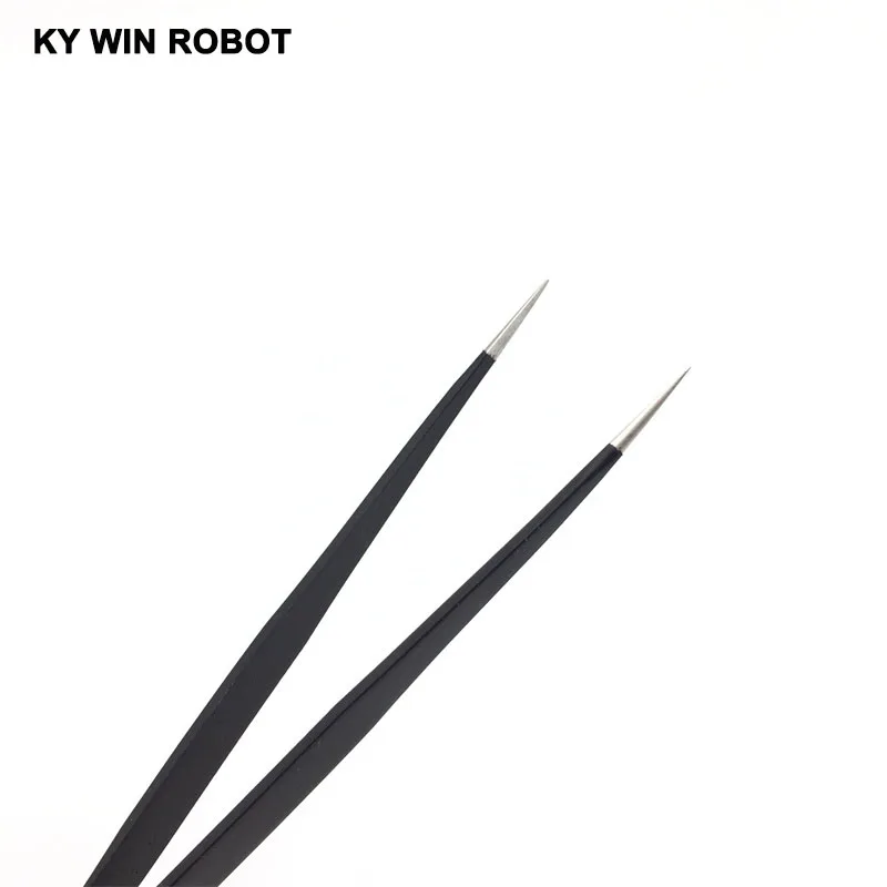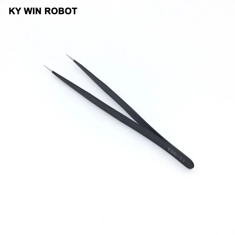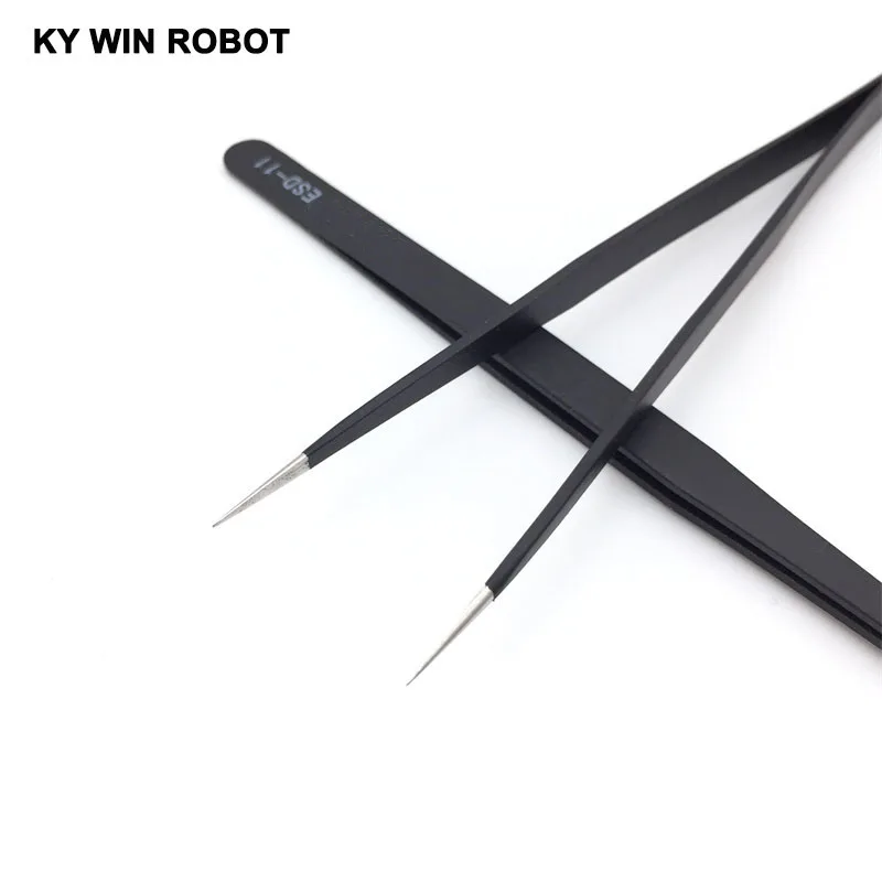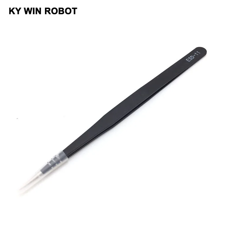 Pinzas de punta recta curvada antiestática, juego de pinzas de soldadura de precisión, herramienta electrónica ESD, 1 ESD-11