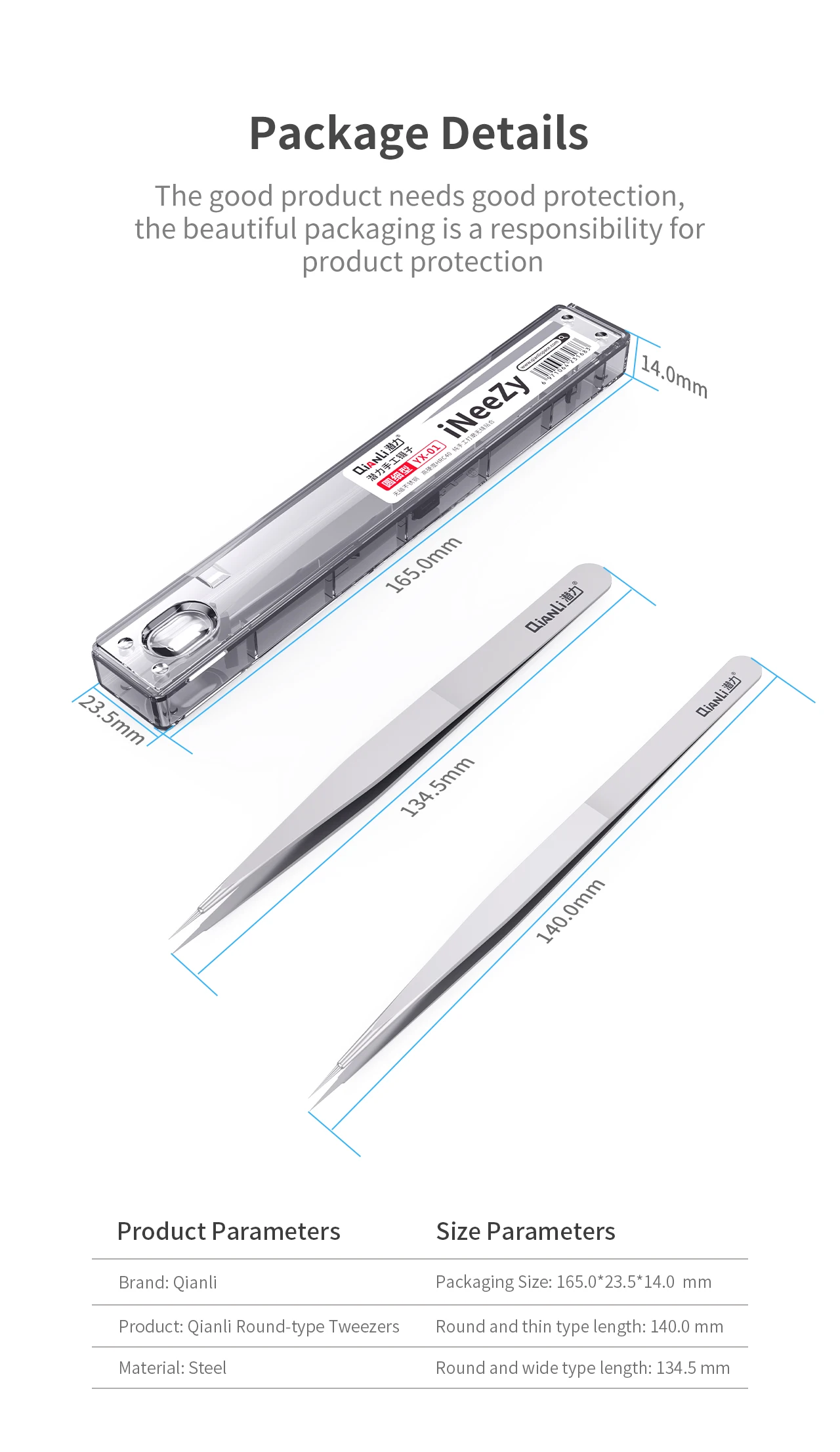 Pinzas Qianli Ineezy de acero inoxidable no magnéticas pulidas a mano, herramienta de reparación de teléfonos móviles, se puede utilizar para reparación de placa base BGA