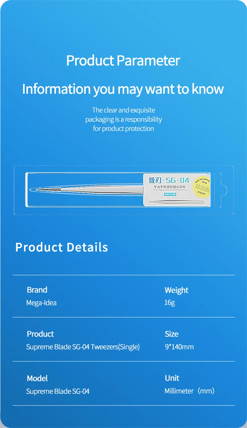 QIANLI MEGA-IDEA SG-04 Pinzas de reparación de precisión Mantenimiento de teléfonos móviles Clips de sujeción de acero inoxidable de alta dureza