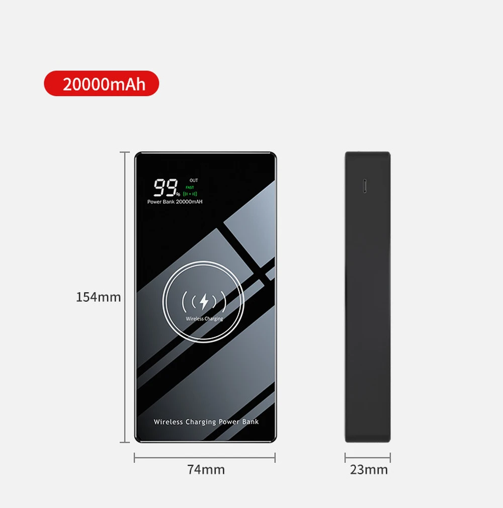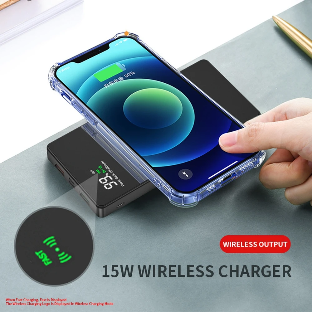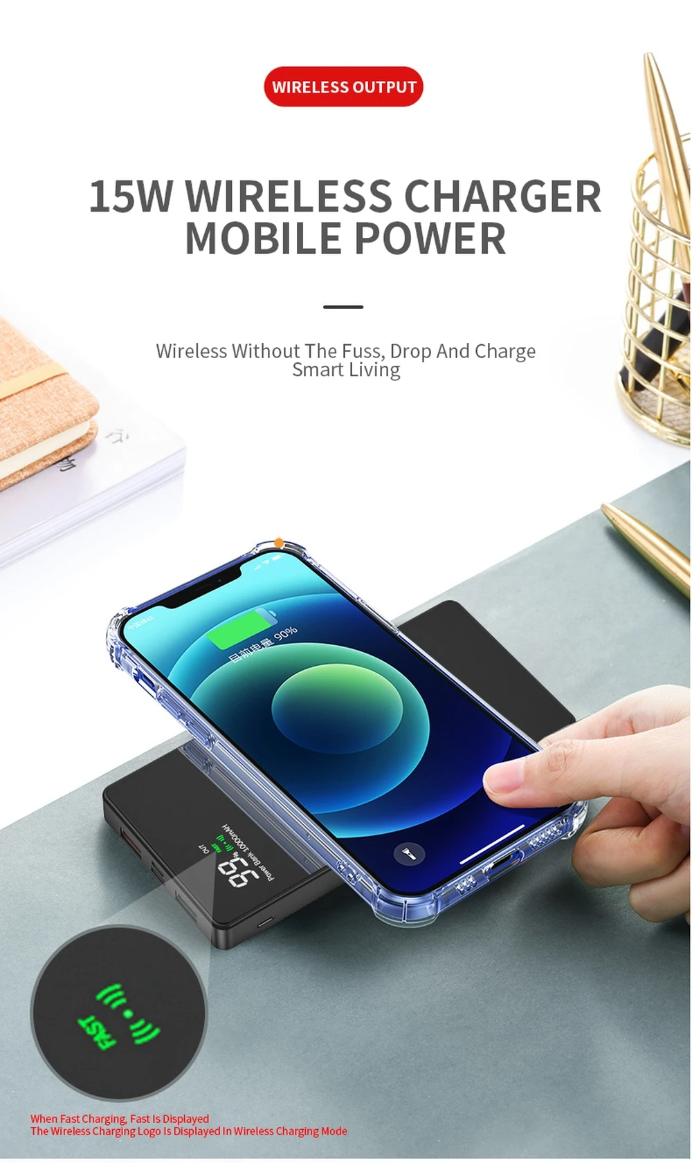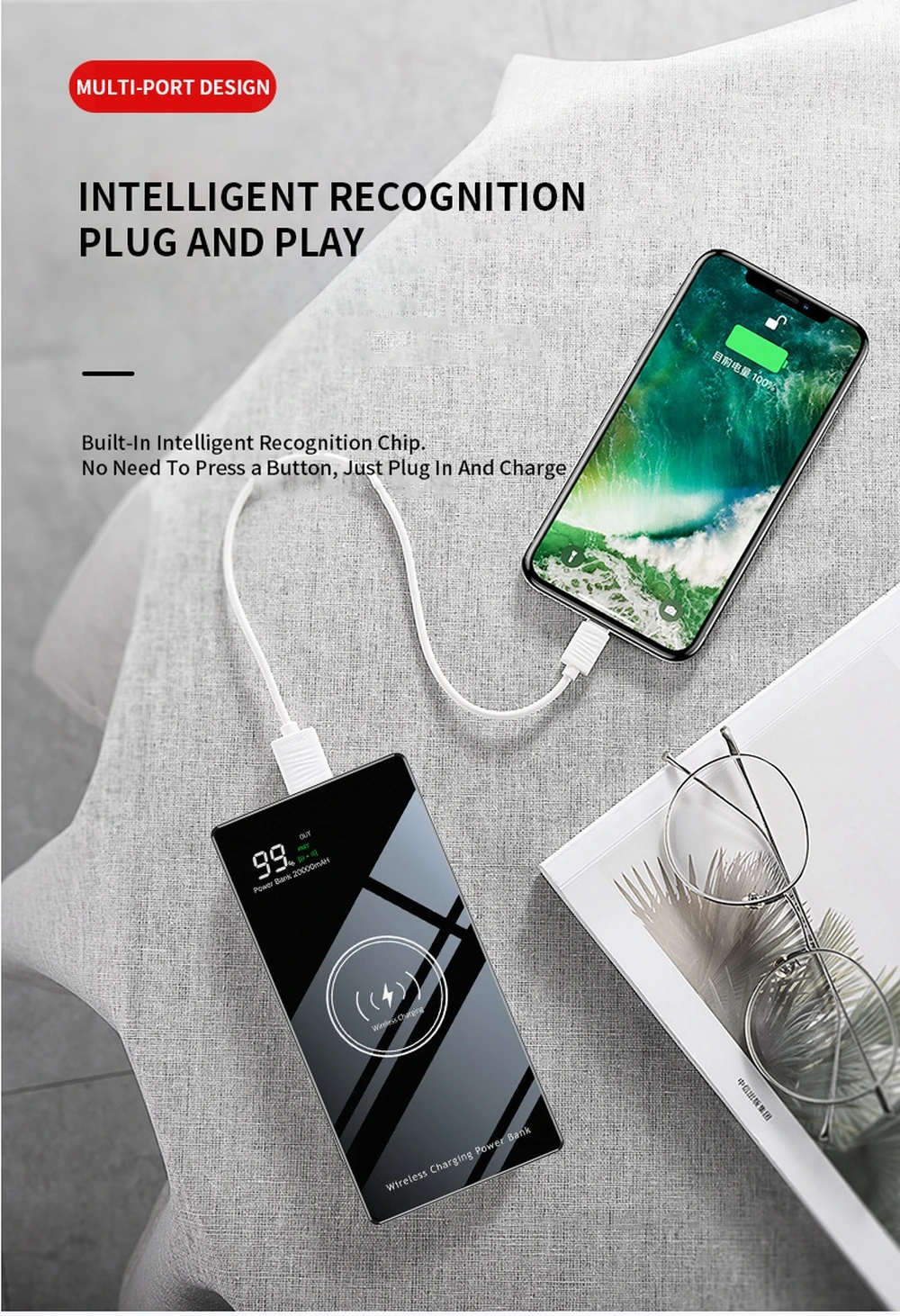 Comprar PINZHENG-Banco de energía inalámbrico para teléfono Xiaomi, batería de repuesto externa, cargador portátil LED, 20000mAh