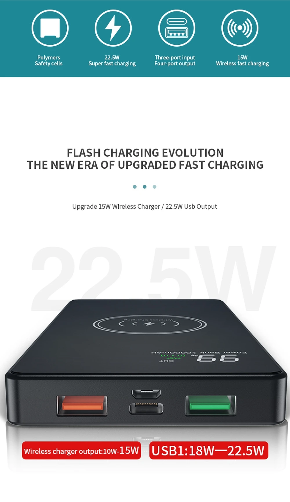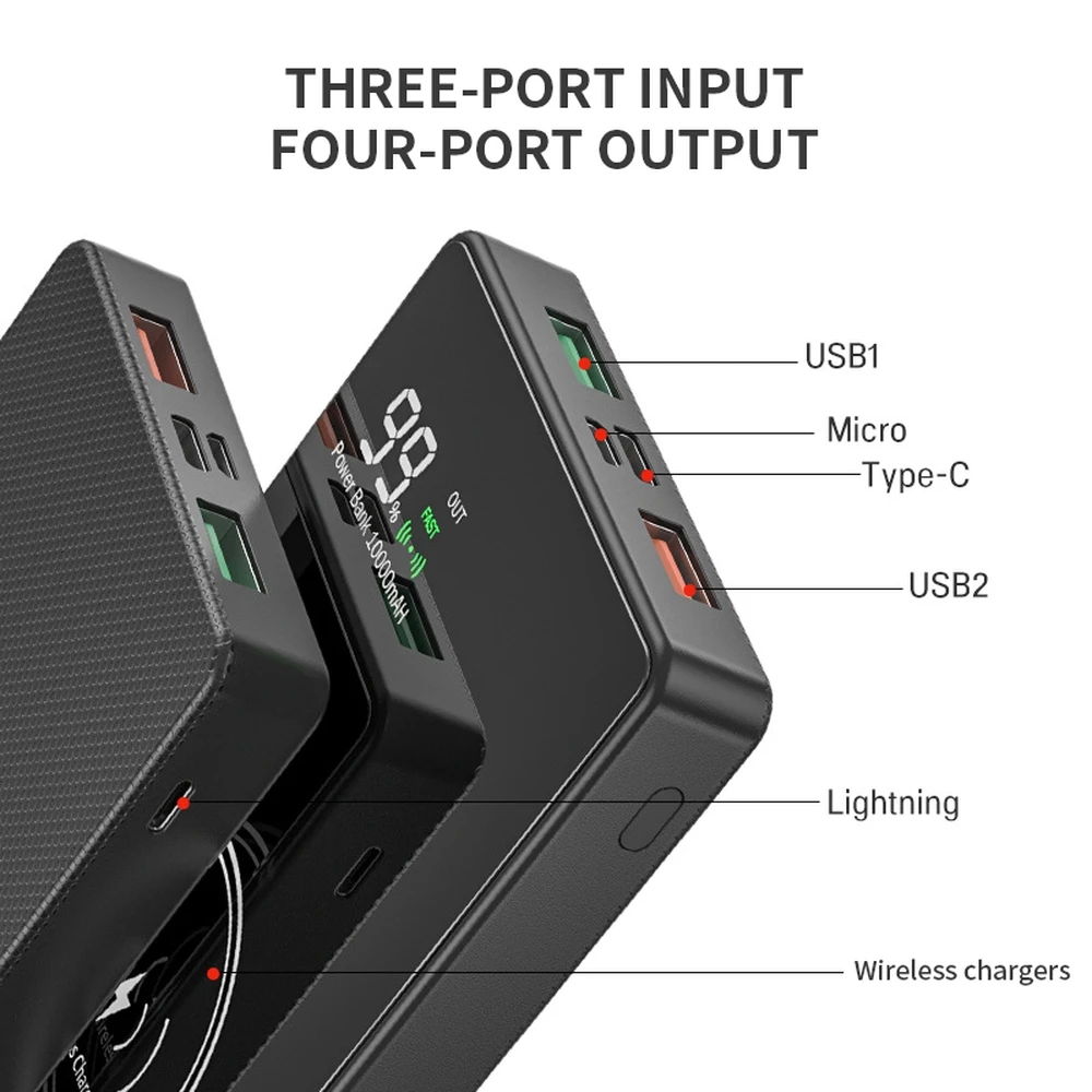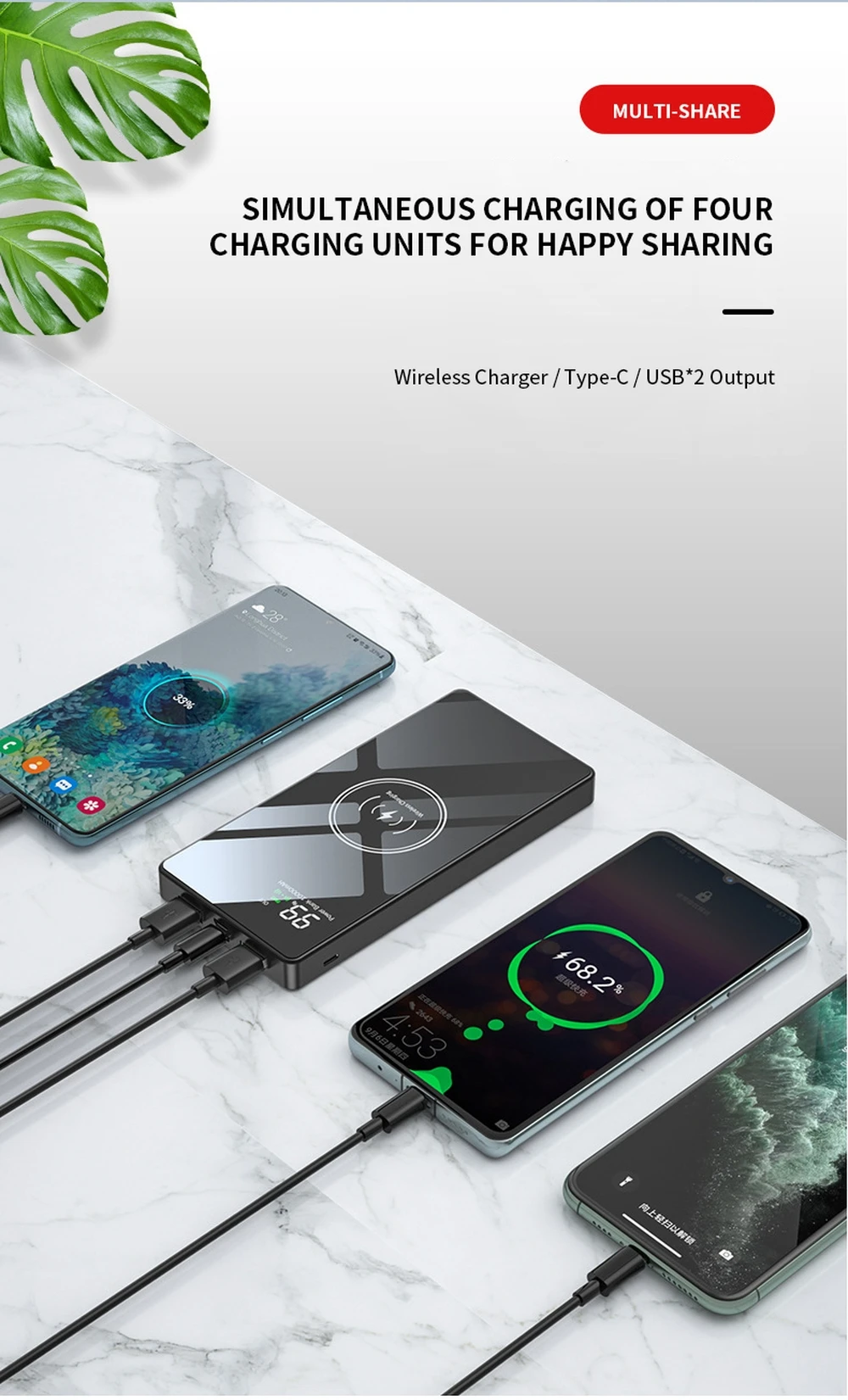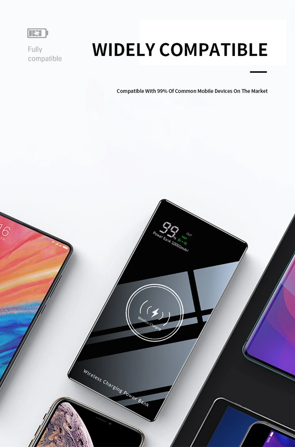 Comprar PINZHENG-Banco de energía inalámbrico para teléfono Xiaomi, batería de repuesto externa, cargador portátil LED, 20000mAh