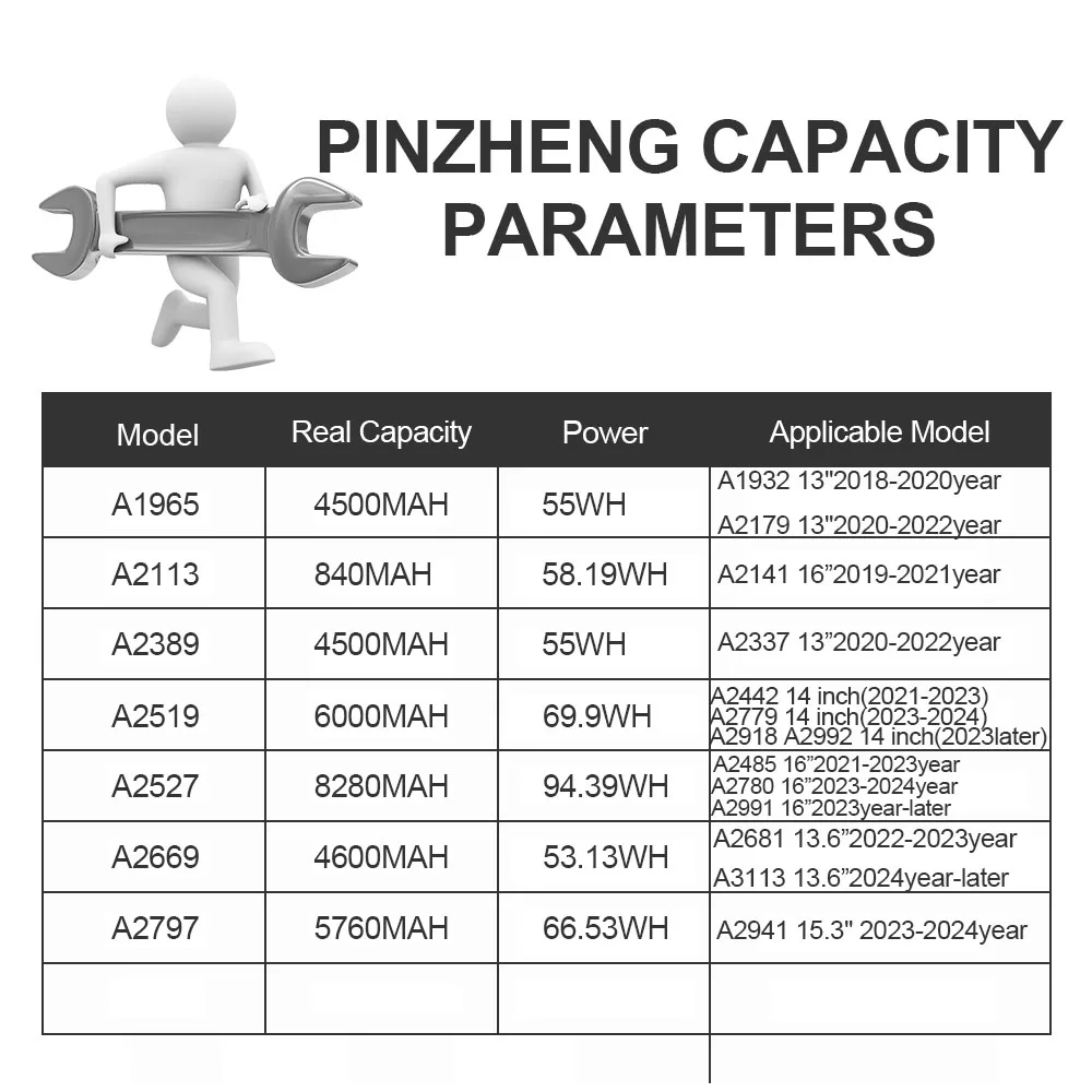 Comprar PINZHENG batería del ordenador portátil para Macbook Air 13 ''A1932 A2179 A2337 A2681 15 ''Pro A2941 A2141 14''A2442 A2779 A2918 A2992 16'' A2485