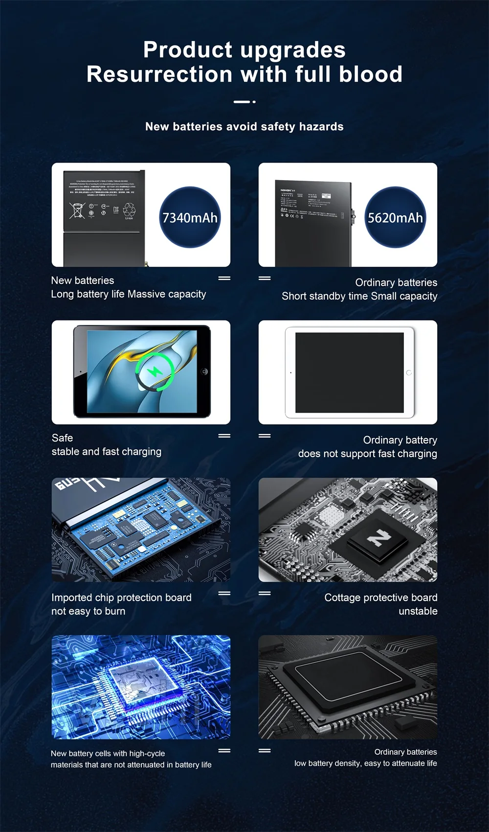 Versiones regulares y actualizadas:Ambos tienen la misma apariencia y forma.La versión mejorada tiene mejores materias primas y mayor duración de la batería.