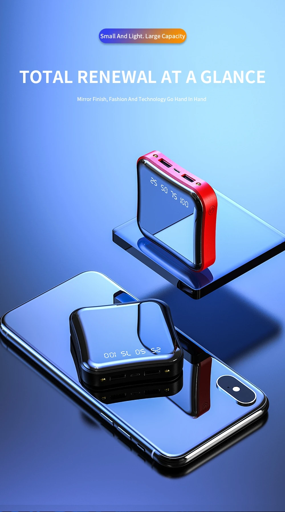 Comprar PINZHENG-Mini banco de energía de 20000mAh, cargador portátil con pantalla Digital LED, USB, para iPhone y Xiaomi