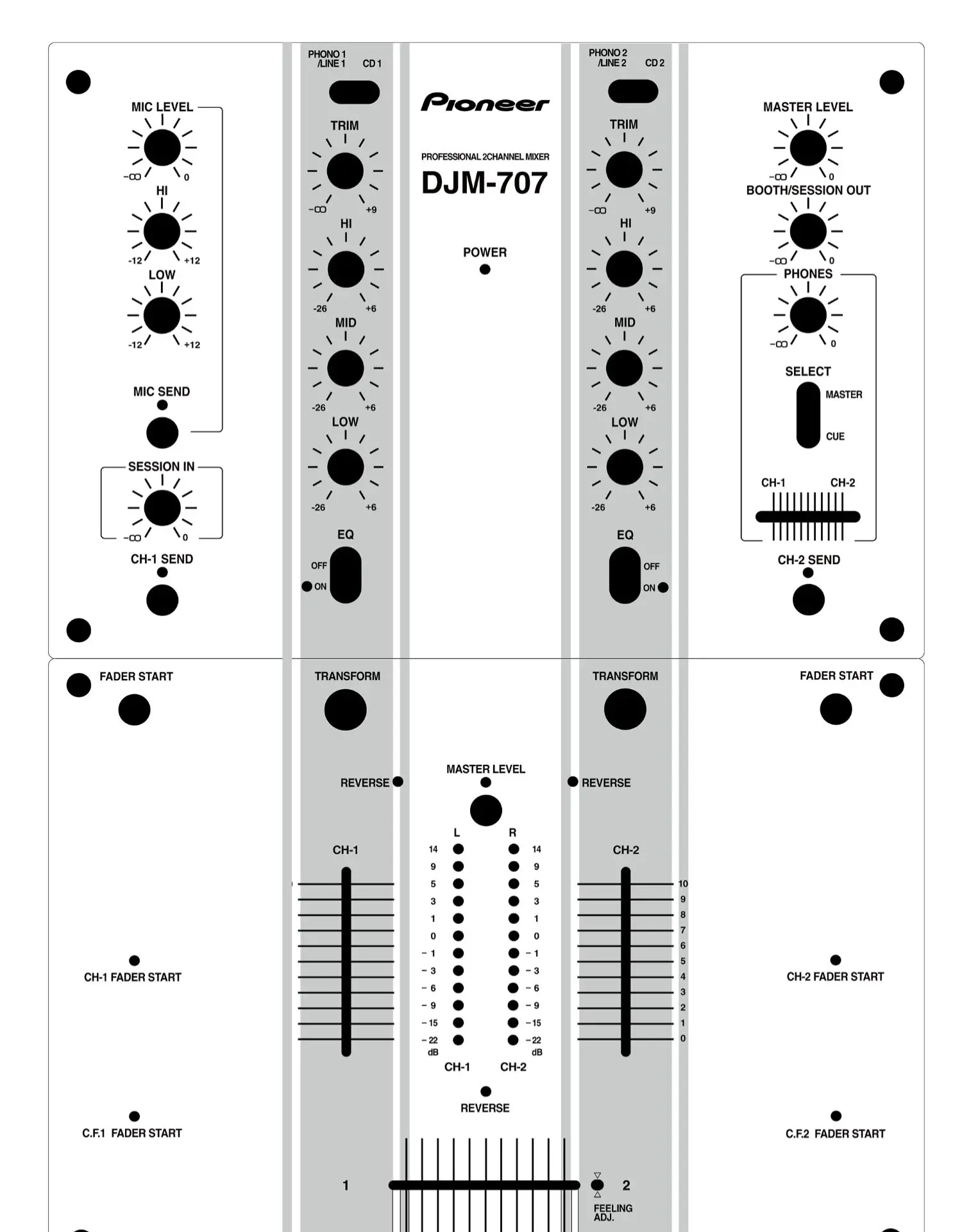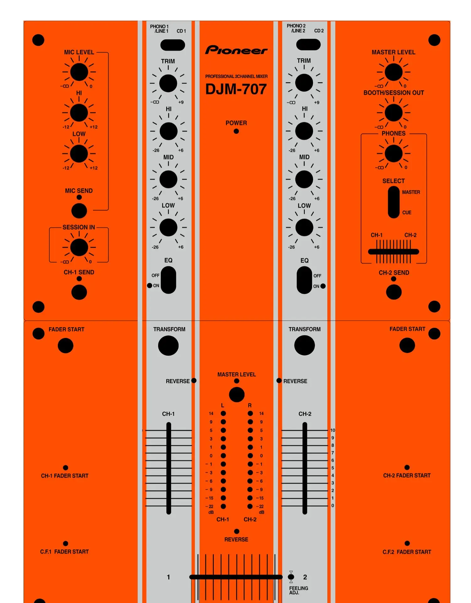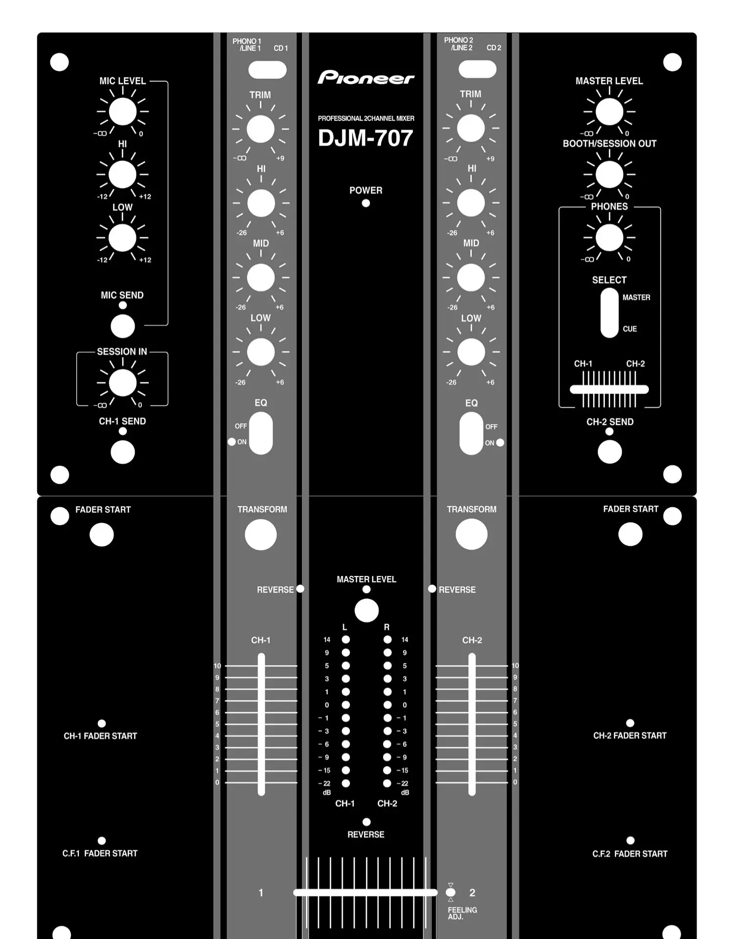 Pioneer DJM-707 Panel mezclador Película autoadhesiva de PVC y pegatinas coloridas personalizables