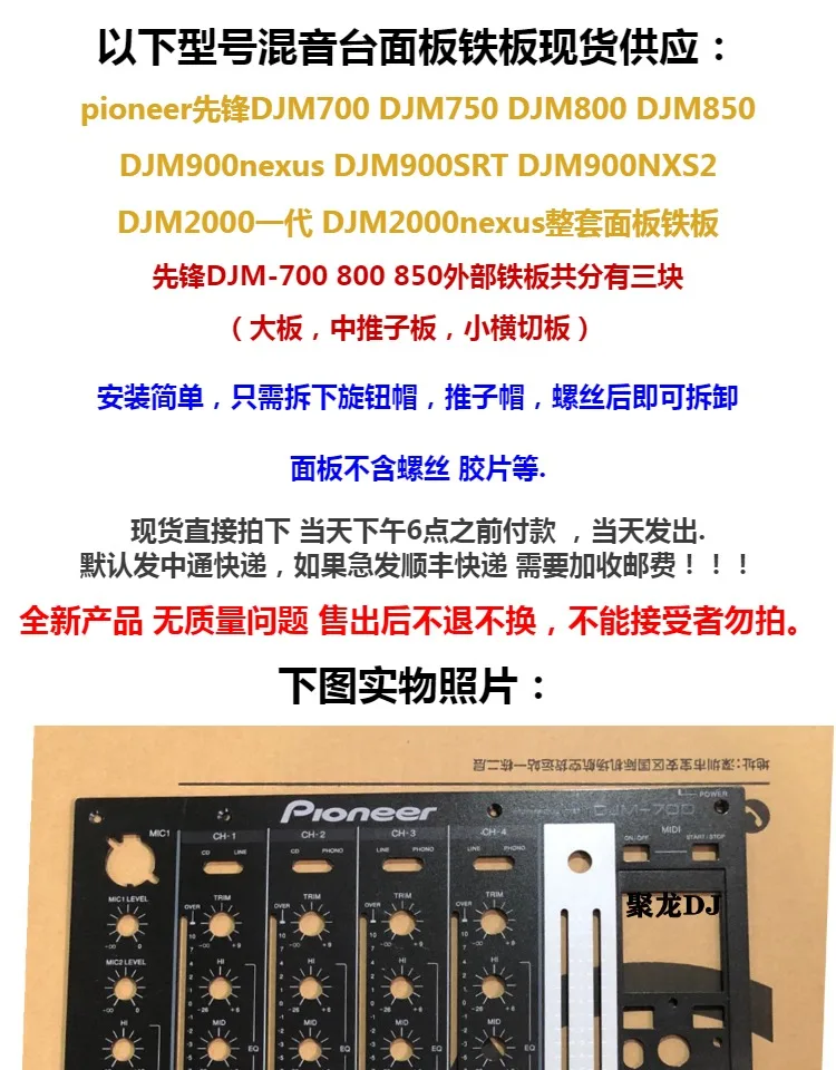 Pioneer Djm700 800 850 900nexus SRT Nxs2 2000 Generation Nexus Panel Iron Plate