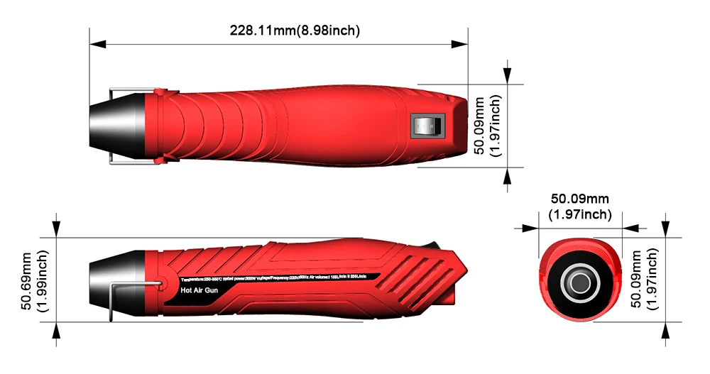 Temperatura de salida 230℃~380℃, temperatura máxima de salida de aire 330~350℃ (El punto de medición real está alejado de la salida de aire).