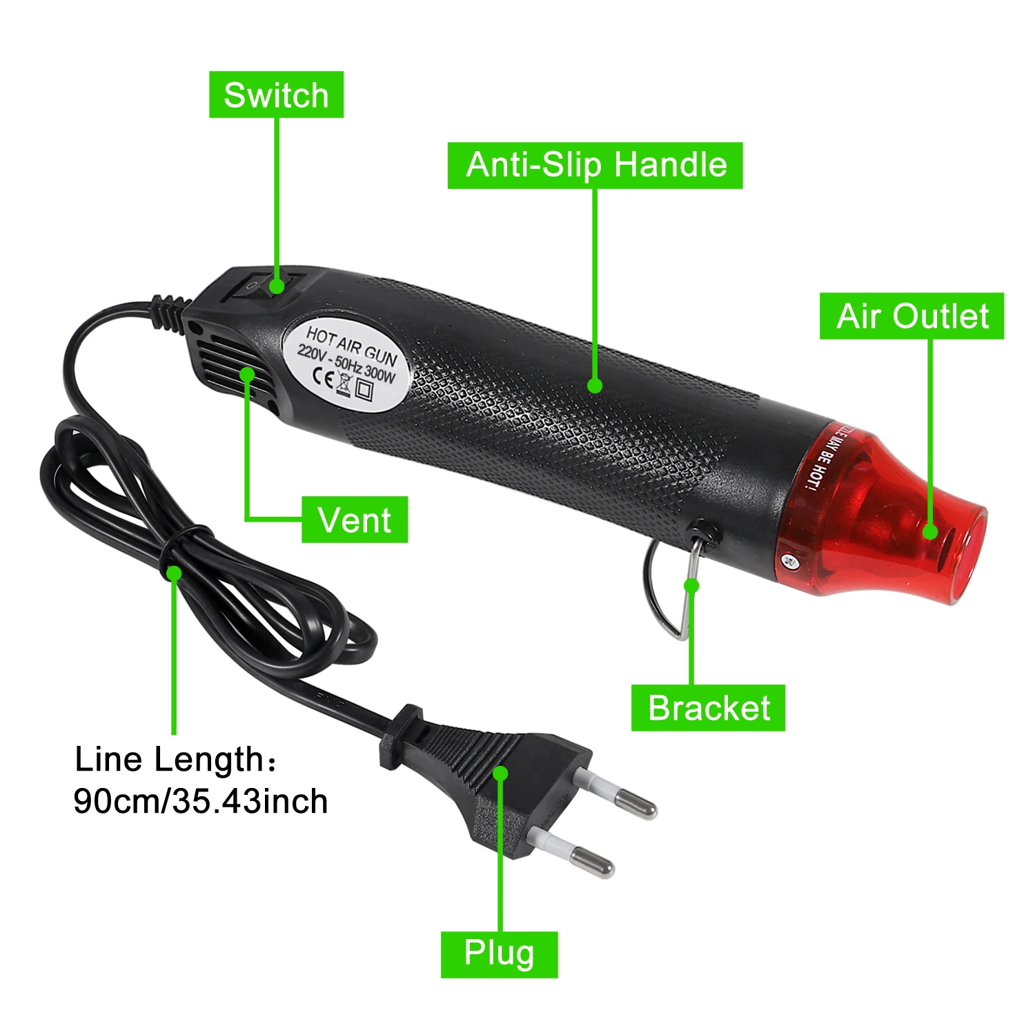 Comprar Pistola de aire caliente de 300W, Tubo termorretráctil de 328 piezas con Kit de pistolas de aire caliente, UE, EE. UU., 110V, 220V, Kit de tubos termorretráctiles 2:1