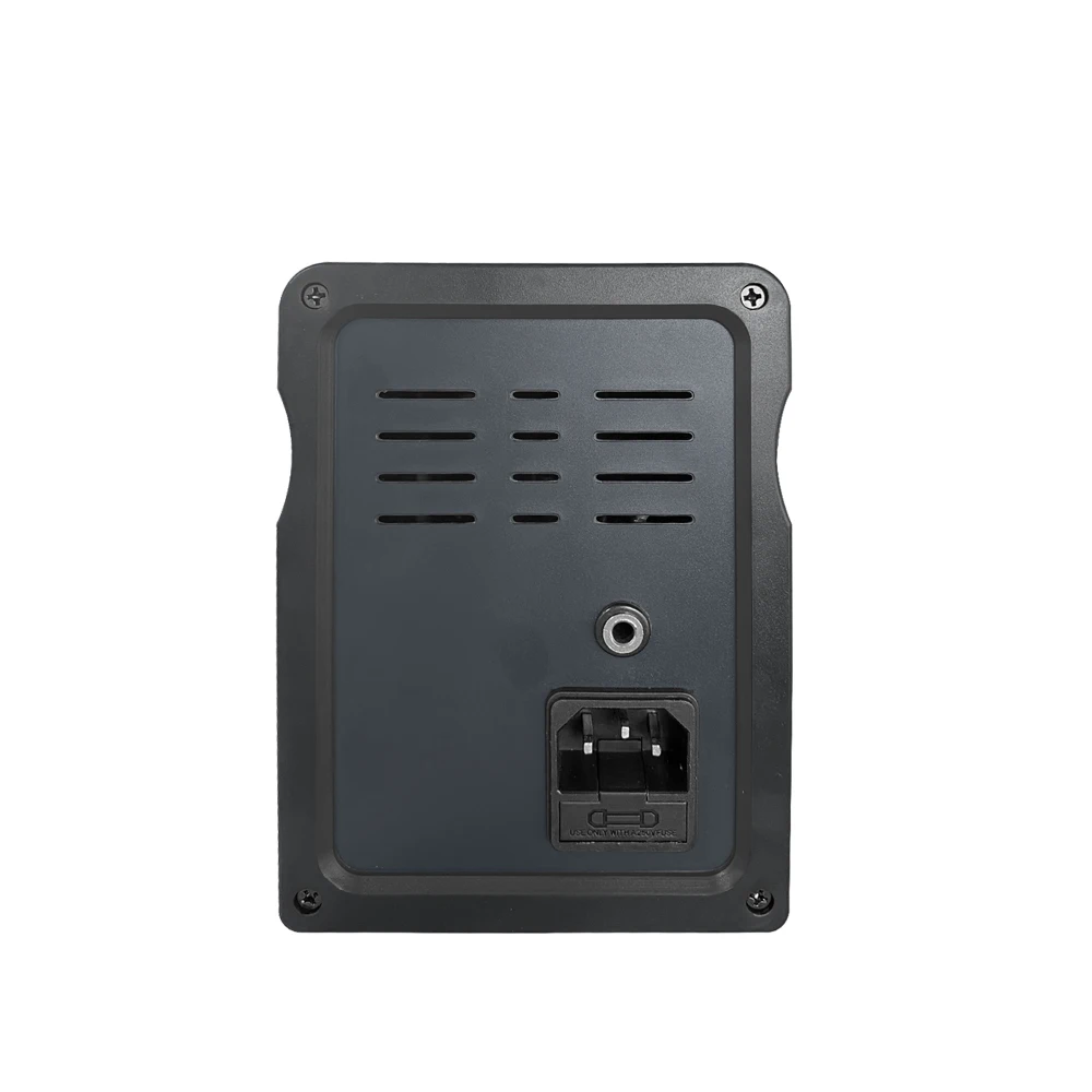 Excelente rendimiento por el precio, puede (des)soldar componentes SMD sin problemas. Además, fue sorprendentemente silencioso en comparación con otras estaciones de retrabajo SWD que he usado antes. (Nota: el carrete de cable en el costado de la imagen fue impreso en 3D y no viene con la unidad. Crear dicho carrete no fue difícil, ya que la estación base ya está preperforada con roscas de tornillo M3).