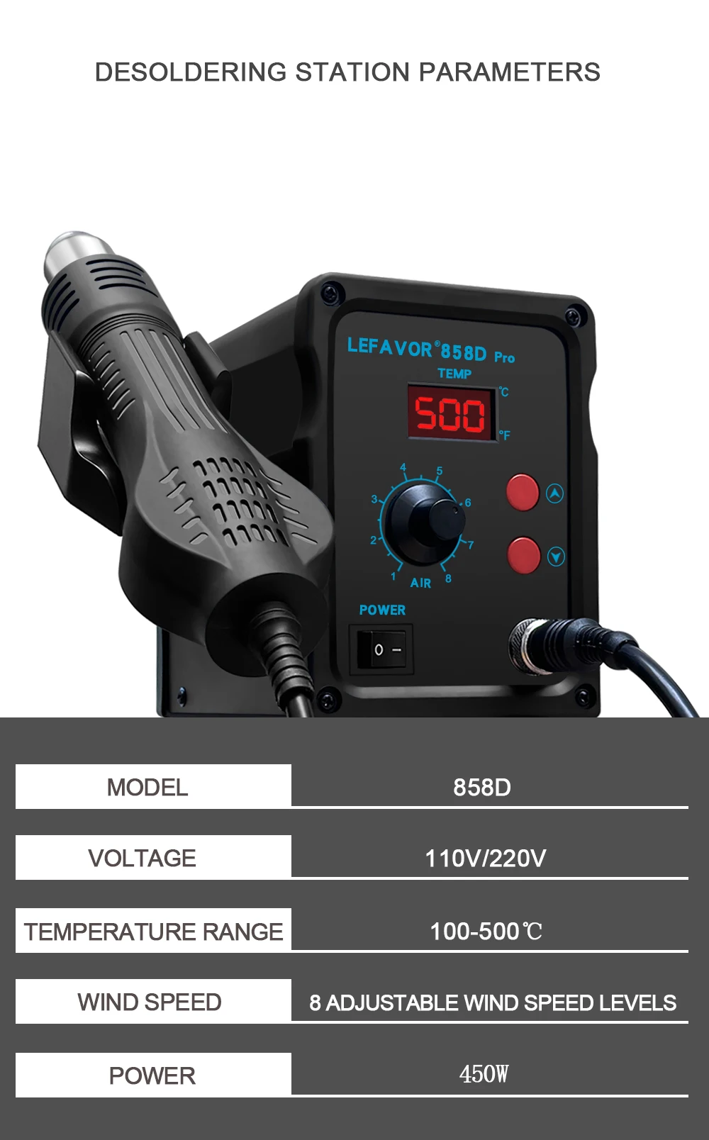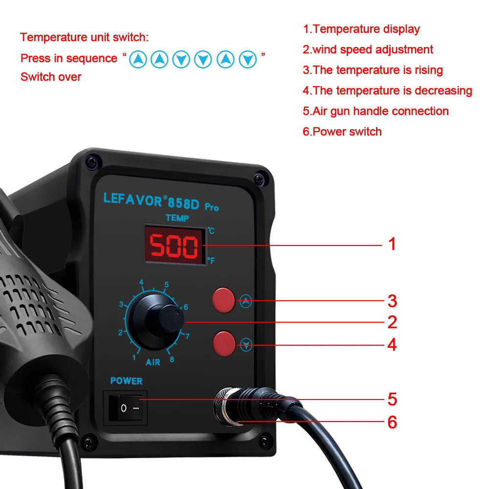 858D pistola de aire caliente BGA estación de retrabajo de soldadura soplador secador de pelo pistola de calor de soldadura 220V 110V SMD SMT reparación de soldadura