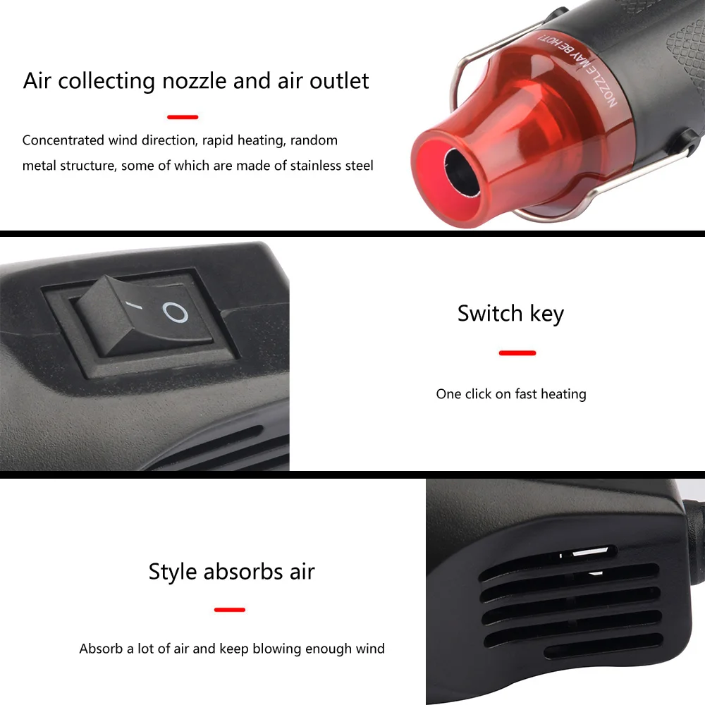 Comprar Pistola de calor de aire caliente de 300W, soplador de temperatura de energía eléctrica, Mini Kit de herramientas para bricolaje, envoltura de soldadura de tubos retráctiles, sello de goma de plástico