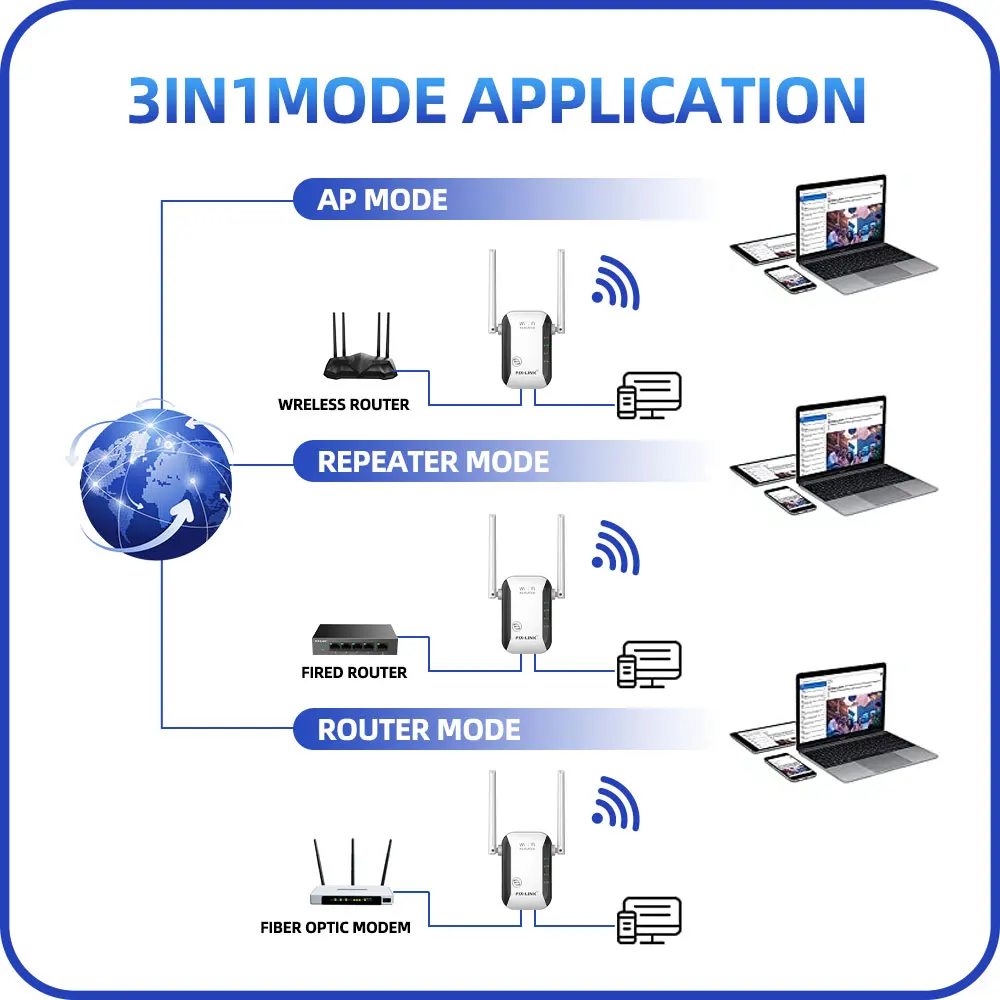 * Soporte modo repetidor inalámbrico y modo AP estándar.