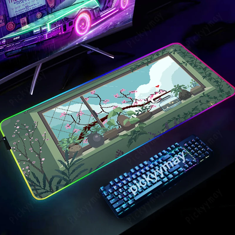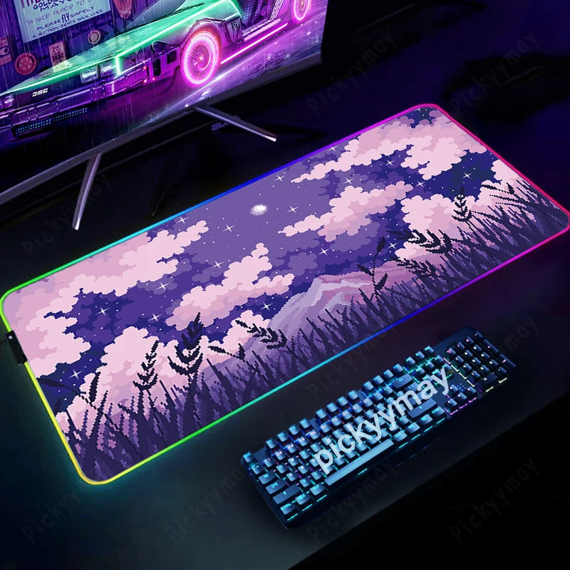 Comprar Pixel Art-alfombrilla de ratón RGB grande para juegos, alfombrilla de ratón LED, alfombrillas de escritorio para jugadores, Alfombra de mesa de goma con almohadillas de escritorio retroiluminadas, 900x400
