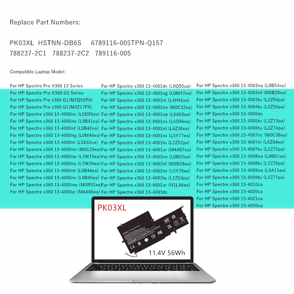 Comprar PK03XL batería del ordenador portátil para HP Pro X360 13 G1 13-4003dx13-4005dx 13-4010ca HSTNN-DB6S 788237 -2C1 788237 -2C2 789116 -005 TPN-Q157